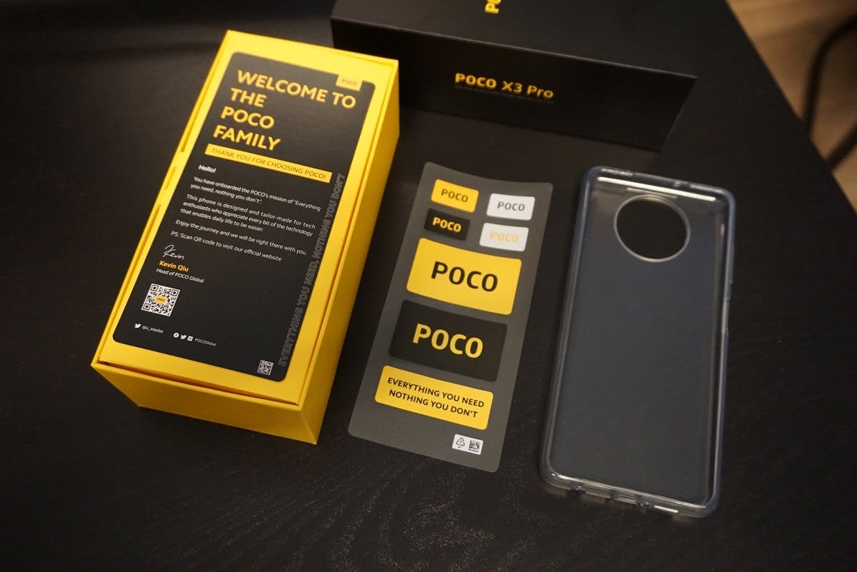 Eerst even iets wat mij opvalt. Het verkooppakket van de Poco X3 Pro is lekker compleet. De fabrikant levert naast een usb-c-kabel en oplaadadapter ook een transparant hoesje en een stickervel mee.