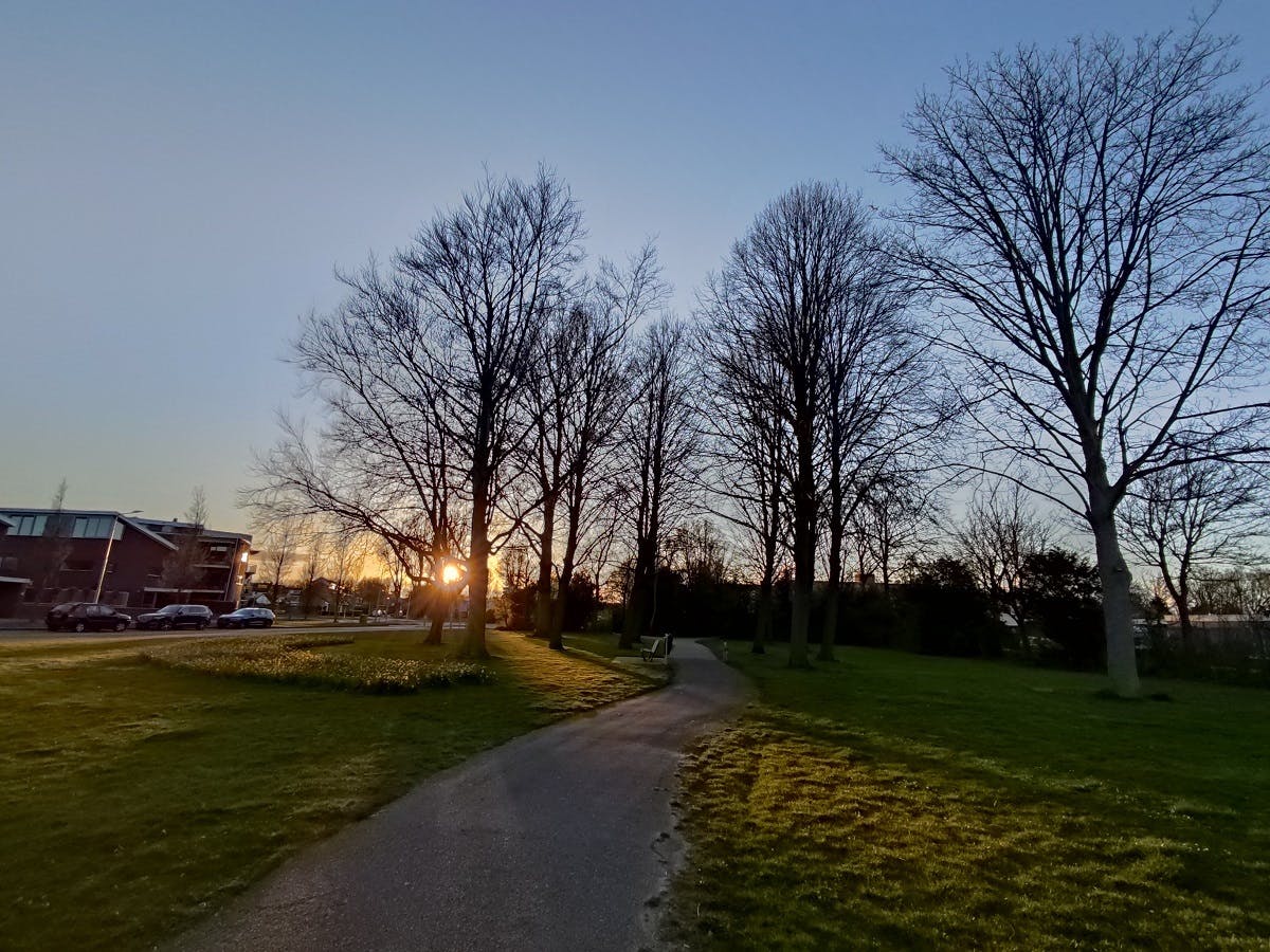 De Poco X3 Pro gebruikt de 48 megapixel hoofdcamera om vier pixels samen te persen voor betere foto’s. Standaard schiet de camera dus 12 megapixel plaatjes en die zien er overdag heel aardig uit. De foto’s ogen realistisch, scherp en gaan goed om met de ondergaande zon. De groothoeklens legt een wijdere foto vast en hoewel die op alle punten wat minder indrukwekkend is, is de kwaliteit prima. De lagere resolutie merk je vooral als je de afbeelding op je computerscherm of televisie bekijkt.