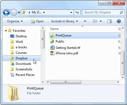 Ten slotte is er nog een oude indianentruc om bestanden van je mobiel apparaat via Dropbox af te laten drukken op je printer thuis of op kantoor die is aangesloten op een Windows-computer. Zorg dat Dropbox uiteraard geïnstalleerd is op je computer en dat de app ook op je mobiele telefoon staat. Vervolgens download je op je computer het zip-bestand. Dubbelklik op het eprint.vbs-bestand. Dit VBA-script zal in Dropbox de map PrintQueue aanmaken. Alles wat je in deze map sleept, overal ter wereld, wordt automatisch thuis afgedrukt. Wel moet je hiervoor je computer ingeschakeld laten.