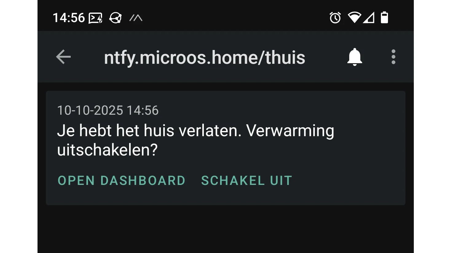 De mobiele app van ntfy moet met je server kunnen communiceren om te vragen of er notificaties zijn. Als je ntfy op een server in je lokale netwerk installeert, moet die dus van buitenaf bereikbaar zijn. Dat kun je met portforwarding in je modem regelen of door je telefoon buitenshuis automatisch met een VPN-server op je lokale netwerk te laten verbinden. Heeft je internetaansluiting thuis geen vast ip-adres, dan moet je ook een DynDNS-updater te draaien.