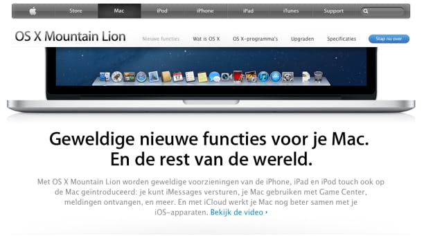 Wanneer u onlangs nog een Mac hebt gekocht en nu alweer moet investeren in een nieuwe versie van het besturingssysteem, voelt u zich natuurlijk enigszins bekocht. Dat hoeft niet, want Apple heeft standaard een overgangsperiode voor mensen die onlangs een Mac hebben aangeschaft. Hebt u uw Mac gekocht na 11 juni 2012, dan kunt u Lion gratis opwaarderen naar Mountain Lion via www.apple.com/nl/osx/uptodate.