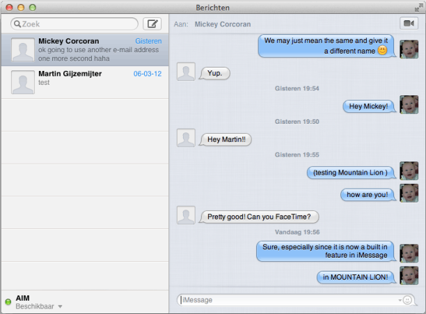 Prettig is dat iMessage nu ook een onderdeel uitmaakt van OS X. Een chatprogramma voor de desktop is natuurlijk niet revolutionair, maar het concept waarbij u onderweg een gesprek begint op uw iPhone, om het vervolgens naadloos te vervolgen op uw Mac (of andersom) is dat wel. iMessage integreert in feite sms en chat op de desktop. Jammer dat het alleen tussen Apple-apparaten onderling werkt.