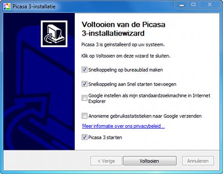 Met behulp van het programma Picasa brengt u gemakkelijk uw fotoverzameling in kaart. Het programma uit de stal van Google heeft daarnaast ook eenvoudige bewerkingsopties in huis. Zo trekt u mislukte horizonnen binnen een mum van tijd recht, waardoor de weergave veel natuurgetrouwer oogt. Bijna iedereen fotografeert een beetje scheef en dat is in de veel gevallen erg storend. Tijd om deze foto´s te bewerken! U surft naar de website Picasa om de nieuwste versie van de freeware te downloaden. U hebt geen Google-account nodig en het programma van 11,8 MB werkt zonder problemen onder Windows XP, Vista en 7. Loop de installatiewizard vervolgens helemaal door. U accepteert hierin de licentieovereenkomst en bepaalt op welke locatie u de software wilt installeren. Na de installatie plaatst u optioneel een snelkoppeling op het Bureaublad of in het menu Snel starten. Laat in ieder geval het vinkje voor Picasa 3 starten staan en klik op Voltooien.