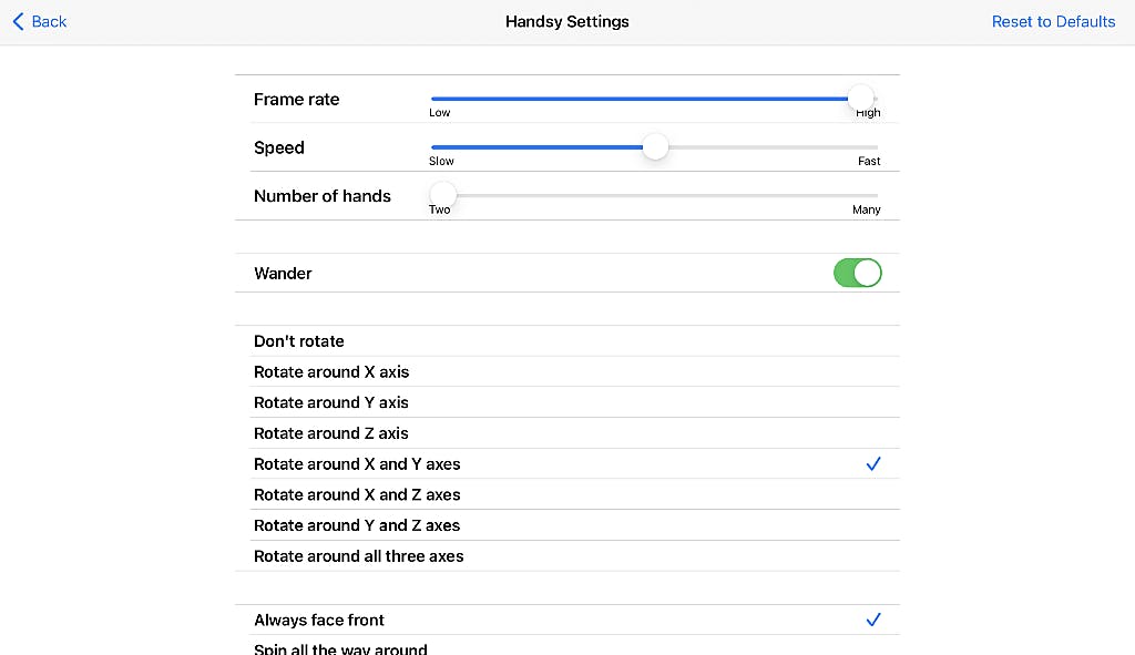 Moderne hardware – inclusief tablets en smartphones – draaien meestal hun hand niet om voor het achterliggende rekenwerk, wat boterzachte animaties tot gevolg heeft. Je start een screensaver door simpelweg op de naam te tikken. Wil je eerst de instellingsmogelijkheden bekijken, dan tik je op de omcirkelde i. Per screensaver valt er van alles in te stellen.