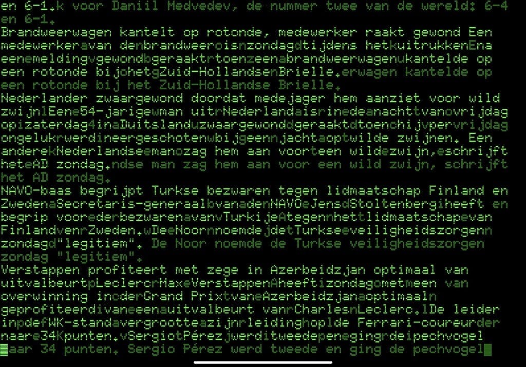 In plaats van de standaard ingestelde Wikipedia-artikelen kun je in de settings ook je eigen URL invoeren. Waarbij je al snel zult merken dat je dan in de meeste gevallen HTML-code te zien krijgt. Wat prima blijkt te werken is een RSS-feed als URL in het daarvoor bestemde veld in de settings in te voeren, probeer bijvoorbeeld maar eens https://www.nu.nl/rss/Algemeen voor een continue stroom aan algemeen nieuws van nu.nl.