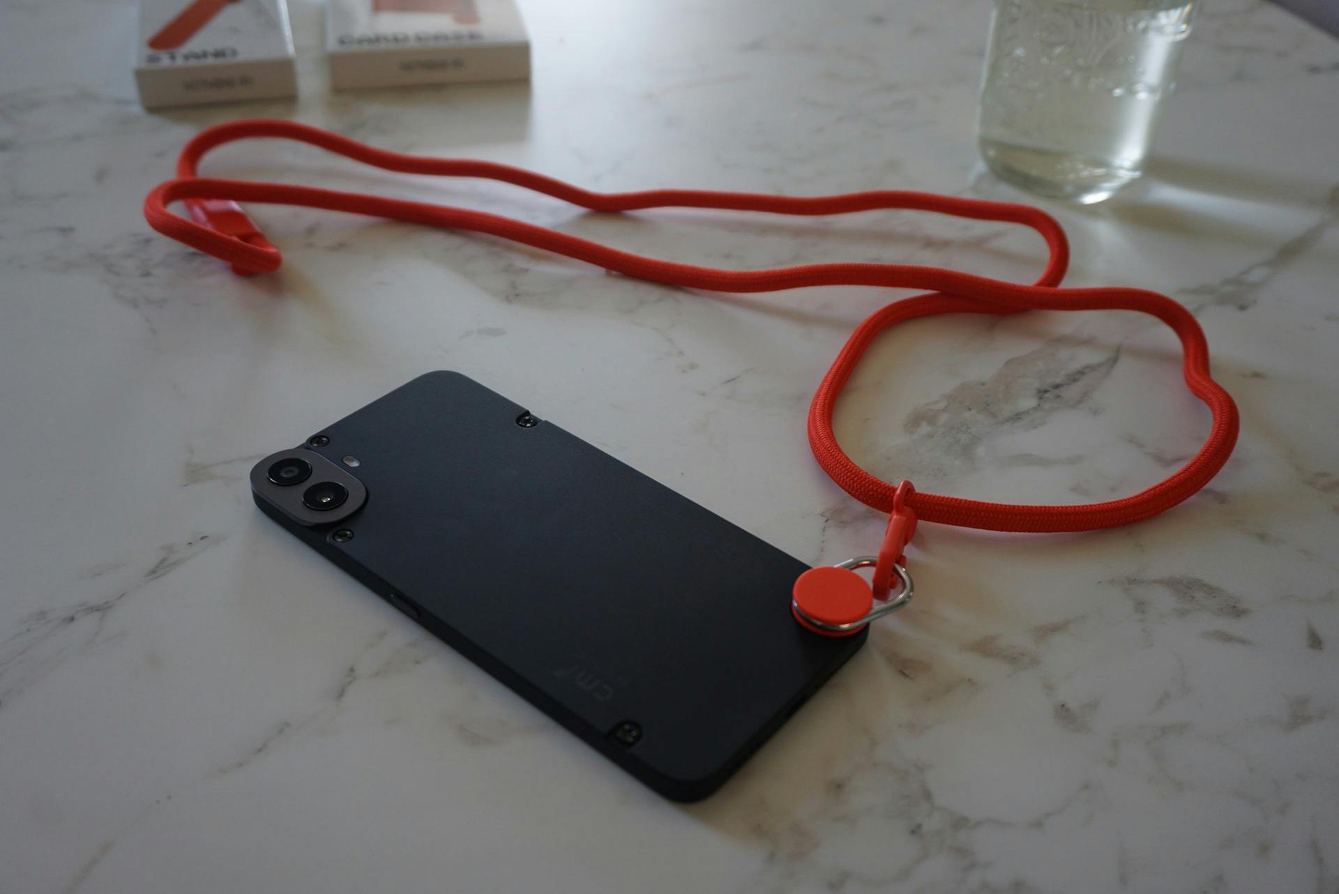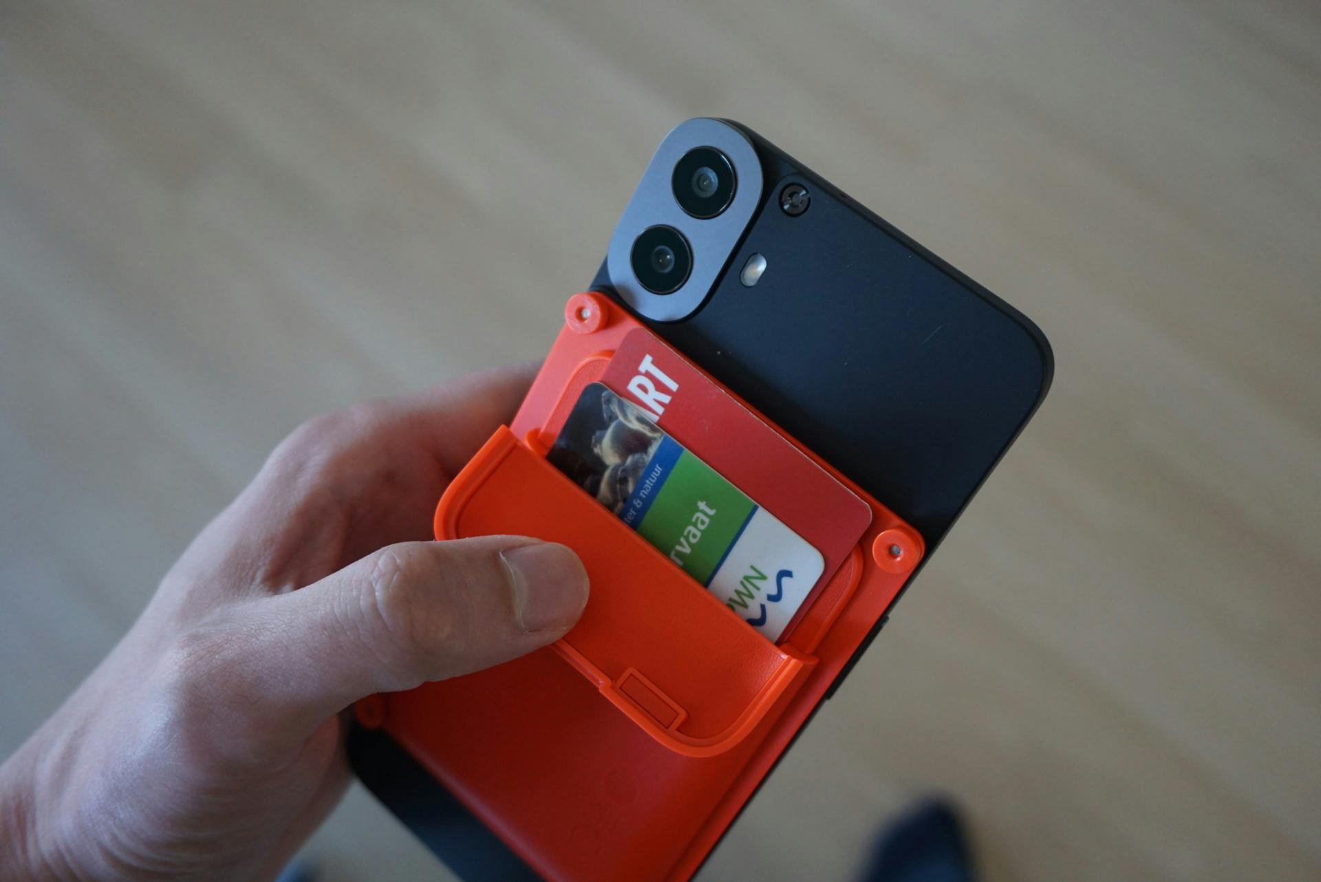 De CMF Phone 1 valt ook om een andere reden op. De schroefjes om de achterkant te verwijderen hebben namelijk een tweede doel. Je kunt een accessoire aan de achterkant monteren, waarvoor je ook even de grote ronde knop onder op de achterkant losdraait. Daarna klik je er een kaarthouder, kickstand of nekkoord aan vast. Deze accessoires kosten allemaal 25 euro per stuk. Je kunt één accessoire tegelijk monteren. De accessoires zijn kwalitatief prima en werken naar behoren. We zijn vooral nieuwsgierig of Nothing nog meer accessoires gaat uitbrengen en zo ja, welke.