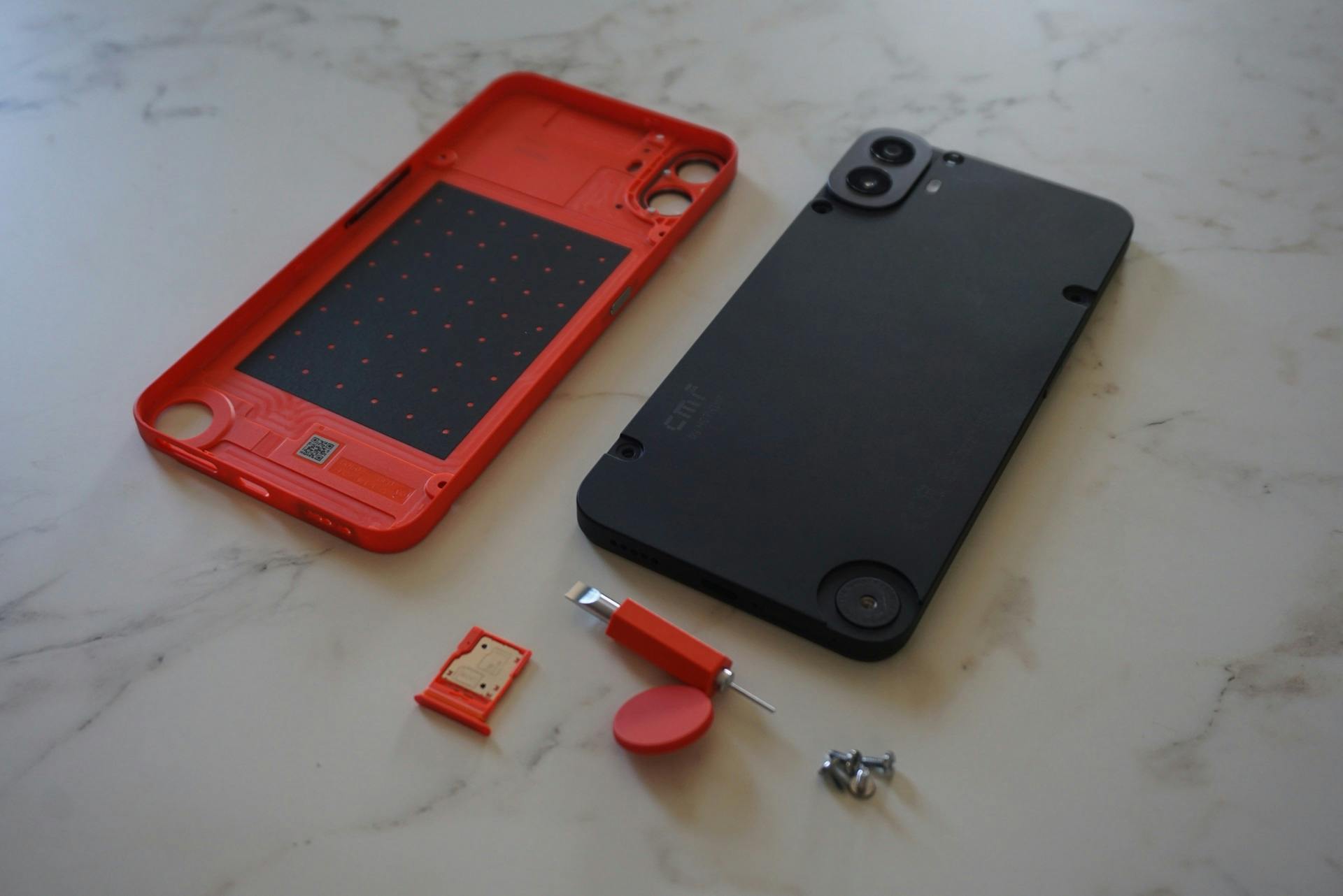 Dat zijn er nogal wat, want de CMF Phone 1 heeft een bijzondere achterkant. Met behulp van de meegeleverde schroevendraaier haal je eenvoudig wat schroefjes los en plop, je tilt zo het achterkantje van de smartphone. Vind je zwart saai? Dan plaats je in een handomdraai een lichtgroene, donkerblauwe of – onze favoriet – knaloranje achterkant terug.