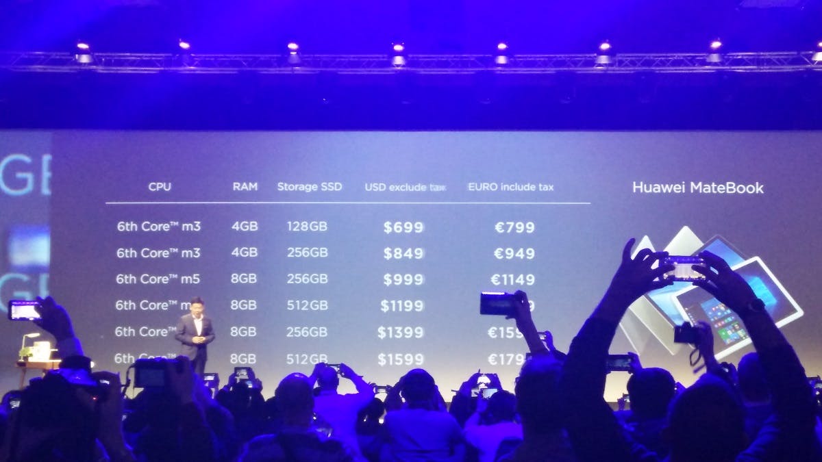 Qua prijs is de MateBook een klein beetje goedkoper dan de concurrenten, maar de tablet is niet helemaal de Chinese prijzen-killer die je misschien zou verwachten. Het basismodel, met 128 GB en de M3-processor, kost 799 euro. De prijzen lopen op tot maximaal 1799 euro voor het duurste model (met M7-processor en 512 GB geheugen), een prijs waarvan zelfs de iPad Pro-bezitters de neus op durven halen.
