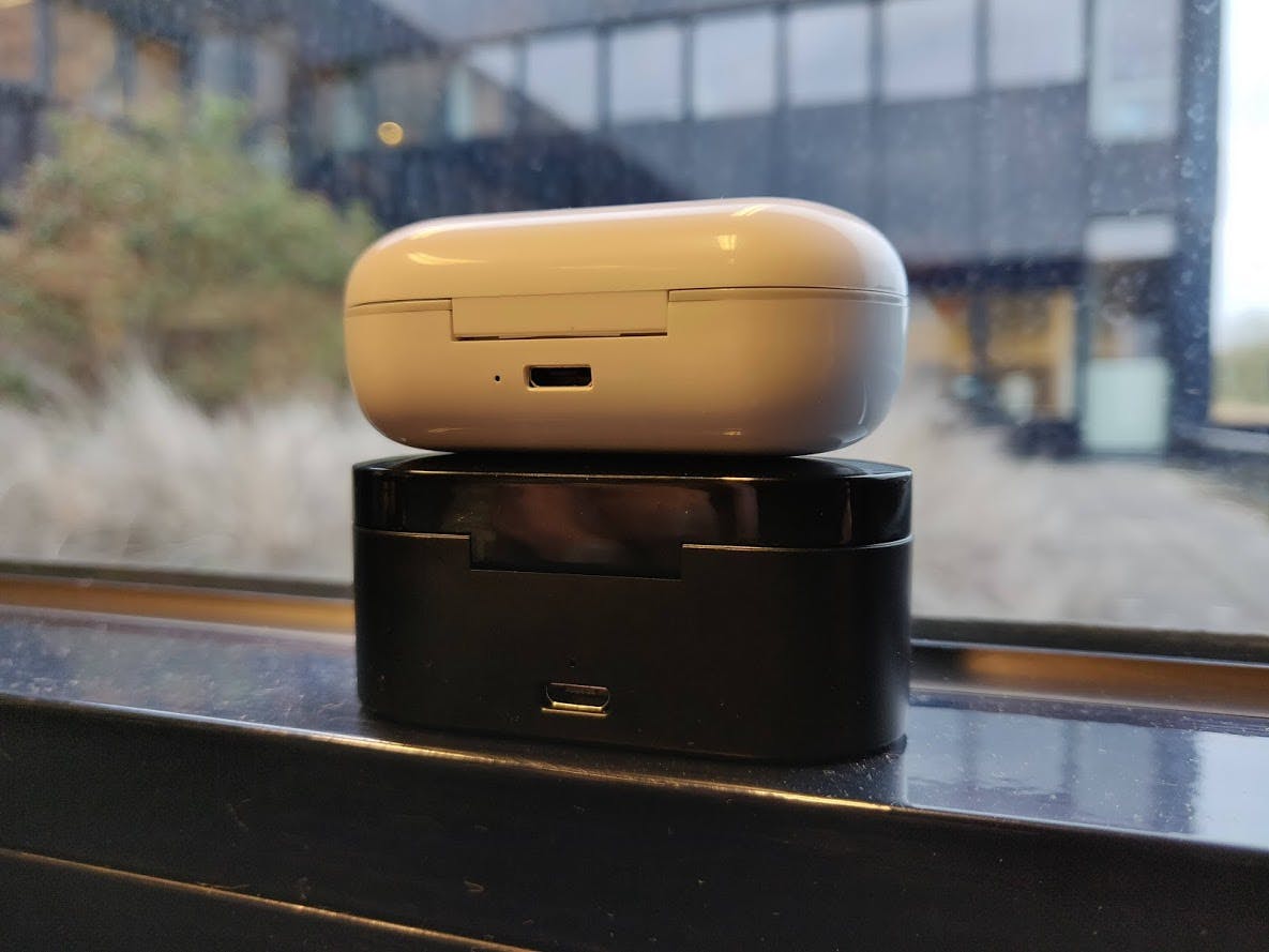 De praktijk is gelukkig duidelijker: beide oordopjes gaan zonder problemen urenlang mee. Ik heb ze in de afgelopen weken niet langer dan drie uur achter elkaar gedragen, maar dat lukt in ieder geval. Berg je ze op in het doosje dan laden ze direct op. Hierdoor heb ik eigenlijk nooit met lege dopjes gezeten. Is het doosje bijna leeg, dan laad je hem in een uur volledig op. Het systeem is vergelijkbaar met de AirPods en ik vind het ideaal.