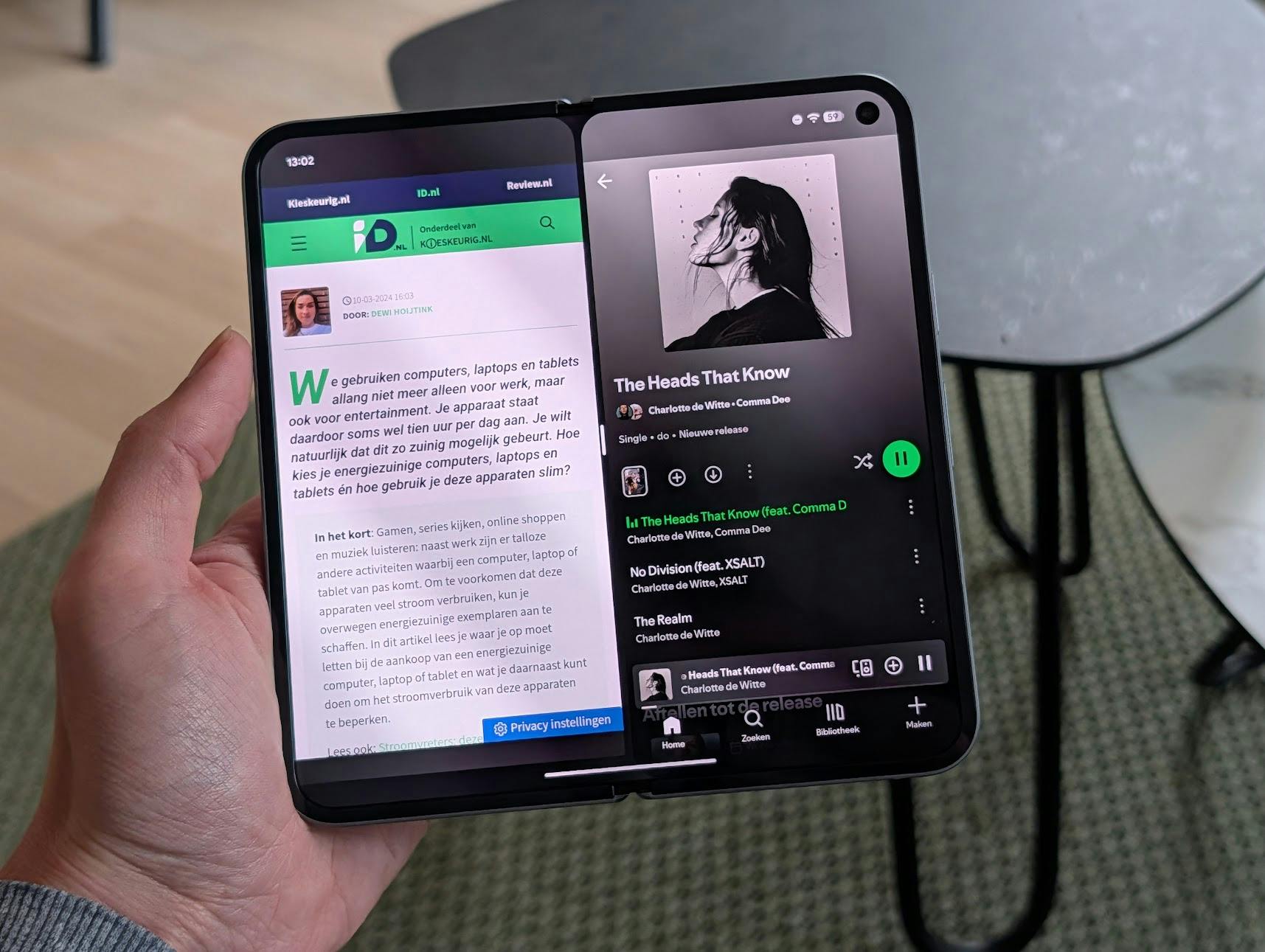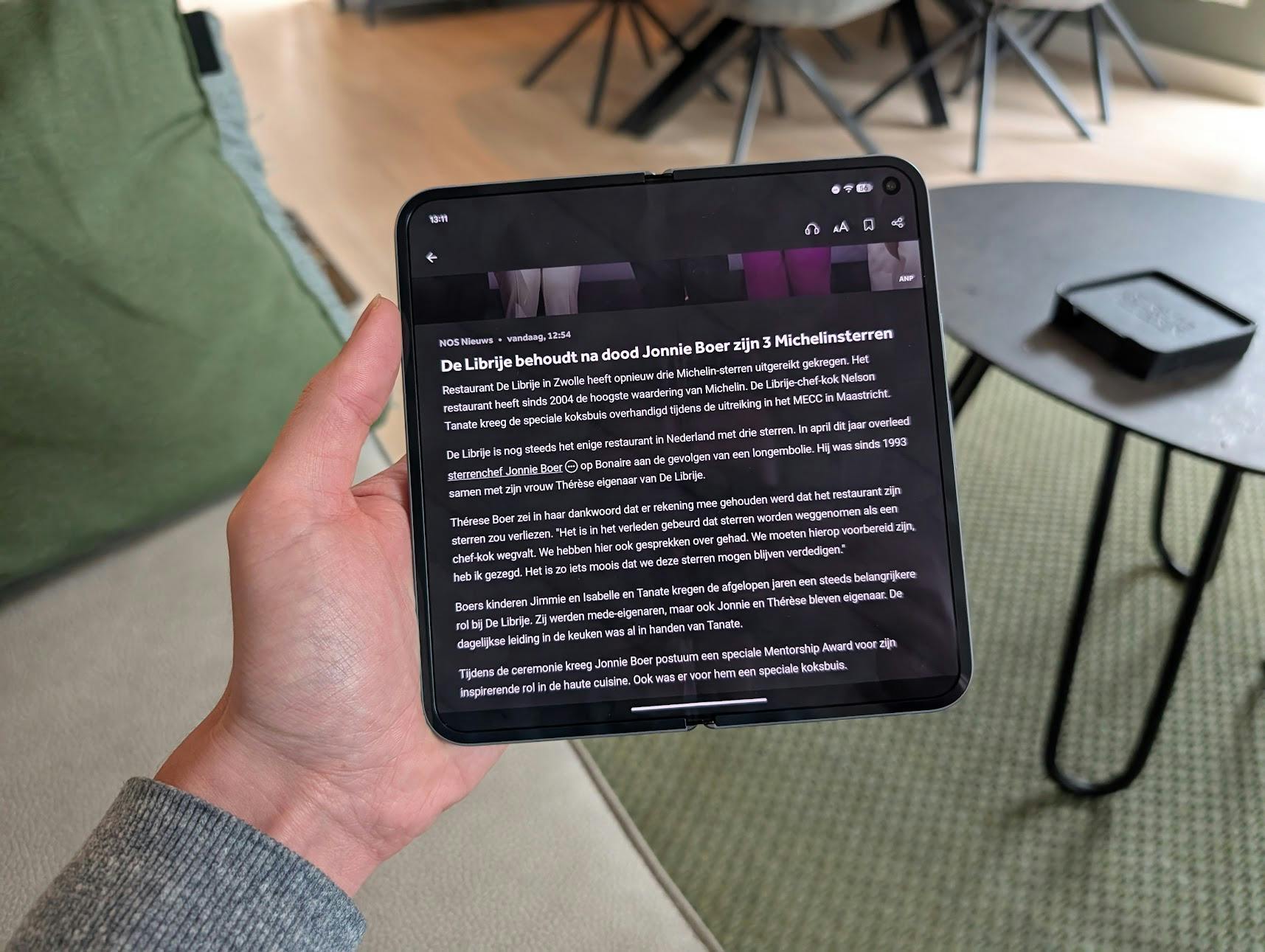 De vouwbare ervaring van deze smartphone is uitstekend. Het scharnier voelt stevig aan en klapt met een prettige klik dicht. Het blijft ergens fascinerend om van een regulier telefoonscherm naar een 8inch-scherm te gaan. Je kunt zo twee apps prettig naast elkaar gebruiken of ziet één app op groter beeld. Leuk als je een video kijkt of een tekst leest, bijvoorbeeld.