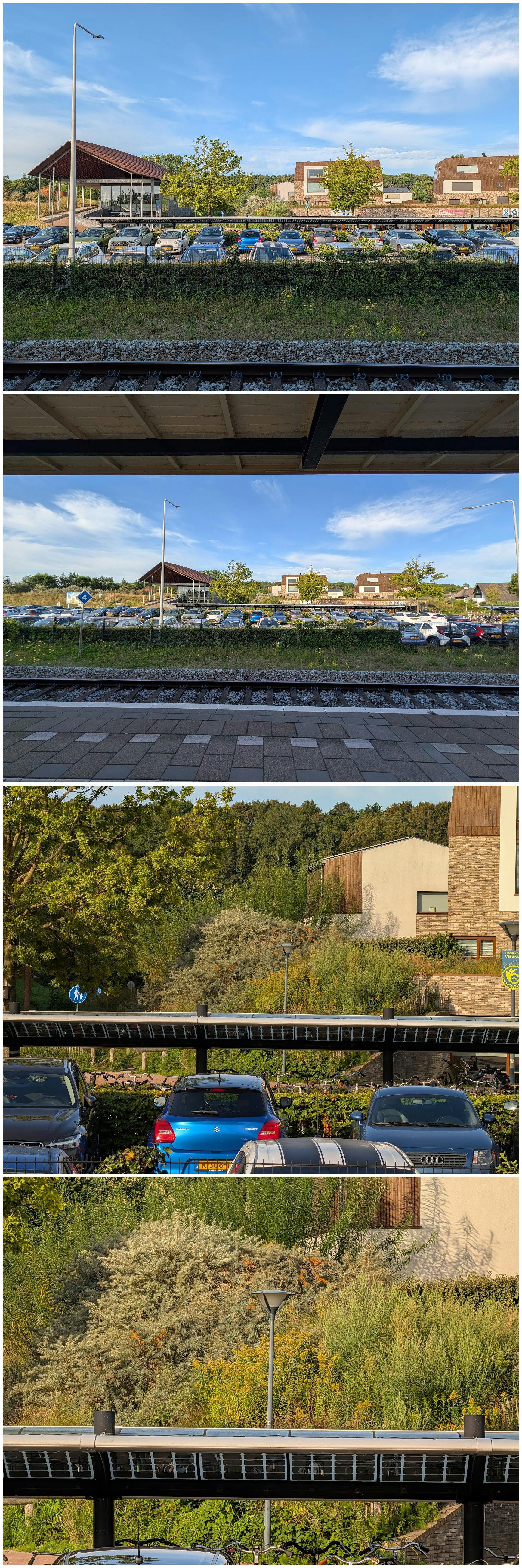 Hieronder zie je twee fotoseries met telkens van boven naar beneden de hoofdcamera, de groothoekcamera en verschillende zoomstanden.