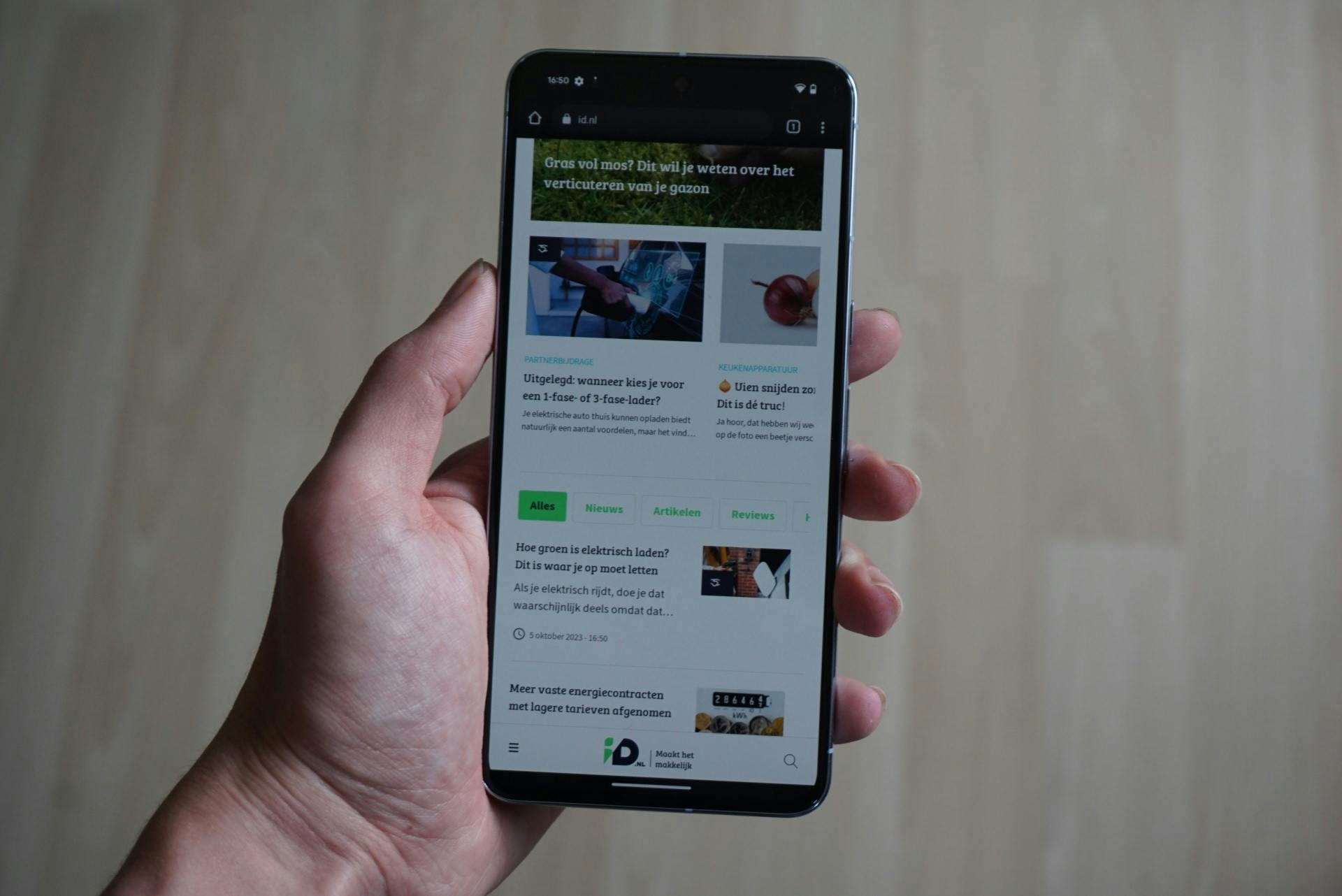 Het beeldscherm van de Pixel 8 Pro is 6,7 inch groot en daarom lastig met één hand te bedienen. We zijn desondanks erg tevreden over het scherm, dat dankzij zijn oleddisplay heel kleurrijk oogt en een scherpe resolutie toont. De verversingssnelheid van maximaal 120 Hz betekent dat bewegend beeld soepel oogt en dankzij de minimale verversingssnelheid van 1 Hz kan het scherm in een altijd-aan-modus de tijd en meldingen tonen zonder veel stroom te verbruiken.