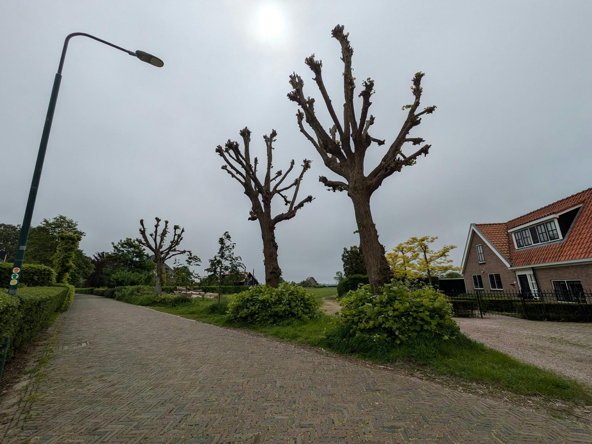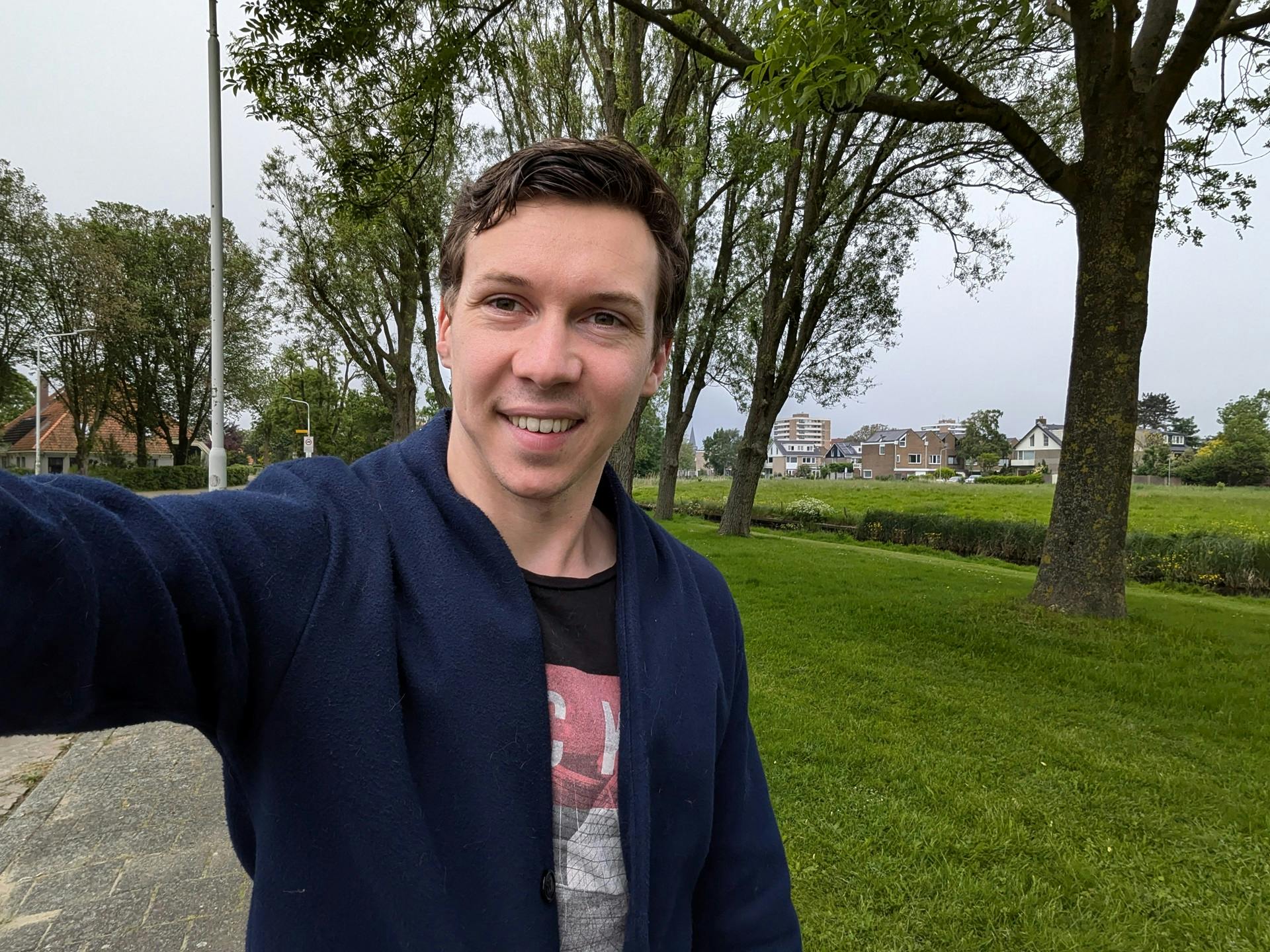 Om het verschil in beeldhoek tussen de hoofdcamera en groothoekcamera duidelijk te maken, hebben we vanaf dezelfde positie op de weg een rij bomen gefotografeerd met beide camera’s. Zoals je ziet, legt de groothoekcamera een veel groter deel van de omgeving vast en is de beeldkwaliteit nog steeds prima. In de hoeken treedt wel een lichte bolling op, maar storend willen we die niet noemen.