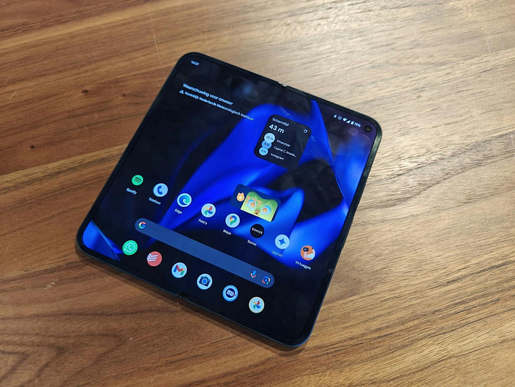 Wij gebruiken het grote scherm vooral om anderen foto's en video's te laten zien, Netflix-series in de trein te kijken en voor apps als Google Maps, YouTube en pdf-lezers. Typen vergt wat gewenning op het bredere toetsenbord, maar gaat prima. Veel apps werken echter net zo goed op het buitenste 'normale' smartphonescherm. Zeker als je je toestel met één hand bedient, bijvoorbeeld als je loopt of in de tram staat.