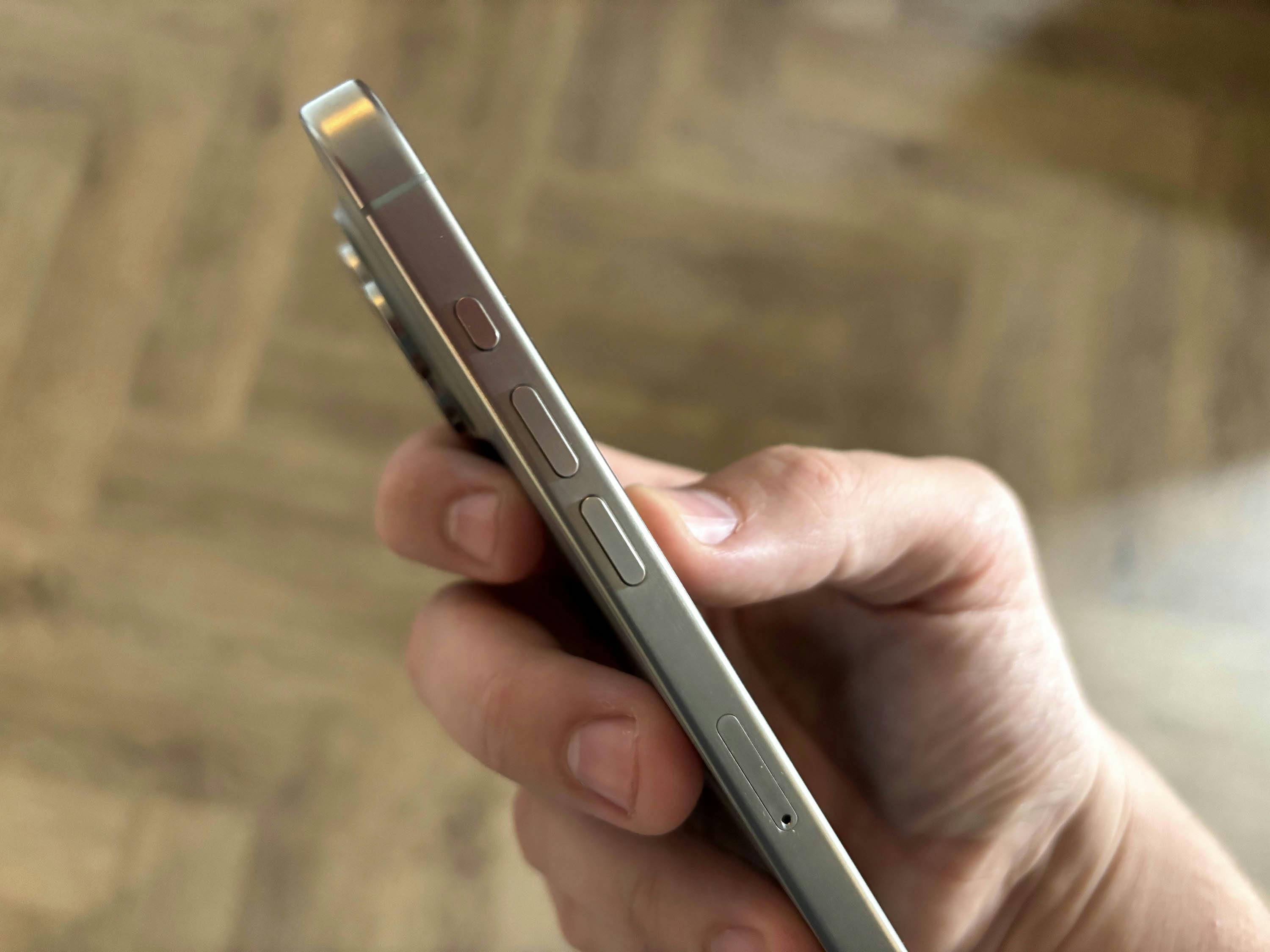 De iPhone 15 Pro is dit jaar niet gemaakt van aluminium of roestvrijstaal, maar bestaat gedeeltelijk uit titanium. Dat maakt de telefoon iets lichter dan zijn voorganger (zo'n 10 procent). Een klein percentage, maar in de praktijk voelt het significant. De iPhone 15 Pro Max voelt in de hand ongeveer net zo zwaar aan als de kleinere iPhone 14 Pro die we daarvoor gebruikten.
