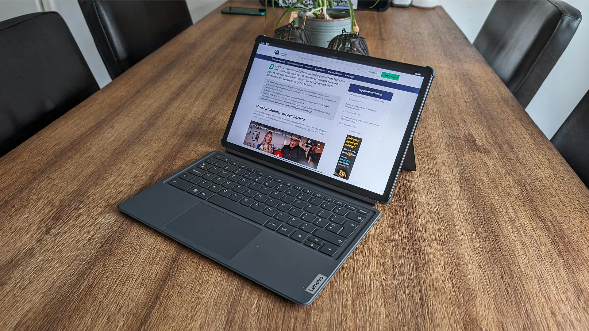 En over werk gesproken: de Lenovo Tab P12 heeft dus ondersteuning voor een extern toetsenbord. Dit pakket kost nog eens 50 euro extra, maar daarna kun je wel prima werken op dit ding. Ja, de Android-omgeving voelt soms een beetje traag door de processor; maar wanneer je eenmaal werkt en geen gekke dingen doet, dan is dit een fijne laptopvervanger voor onderweg. Hij neemt immers weinig ruimte in, is redelijk energiezuinig en het scherm is groot genoeg voor multitasking. De knoppen op het toetsenbord zijn heel dun, maar geven gelukkig voldoende feedback voor blind typen.