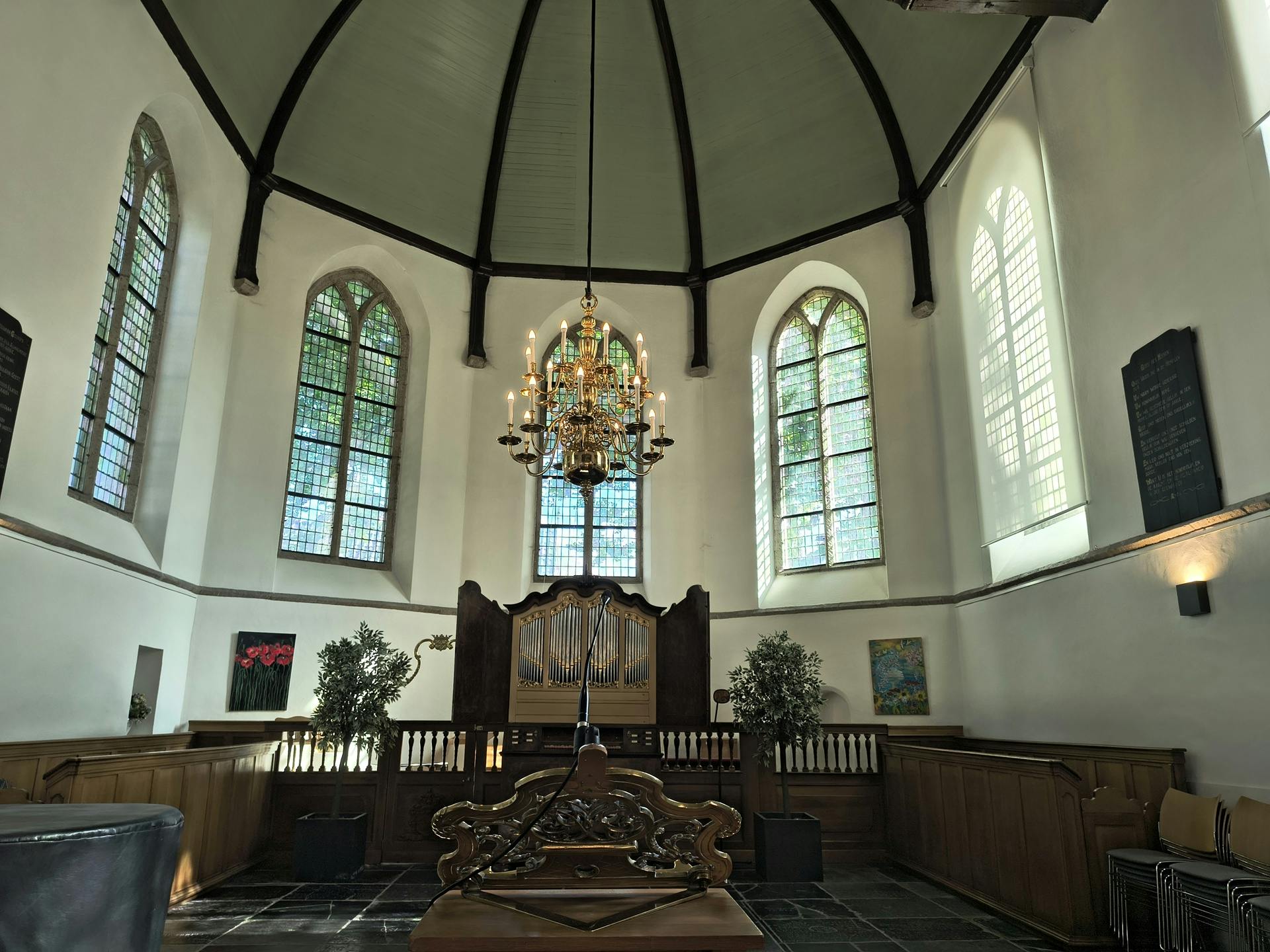 Foto's en video's schiet de smartphone met drie camera's op de achterkant en een prima selfiecamera in een gaatje in het scherm. Motorola heeft achterop gekozen voor een 50megapixel-hoofdcamera met optische beeldstabilisatie (OIS), een 13megapixel-groothoeklens en een 10megapixel-telelens (die ook OIS heeft). OIS helpt om bewogen foto's tegen te gaan. Alle drie de camera’s zijn kwalitatief ruim voldoende en de zoomcamera is beter dan op veel concurrerende telefoons. Hieronder vind je wat foto's gemaakt in de buitenlucht en in een kerk op een zonnige Open Monumentendag.