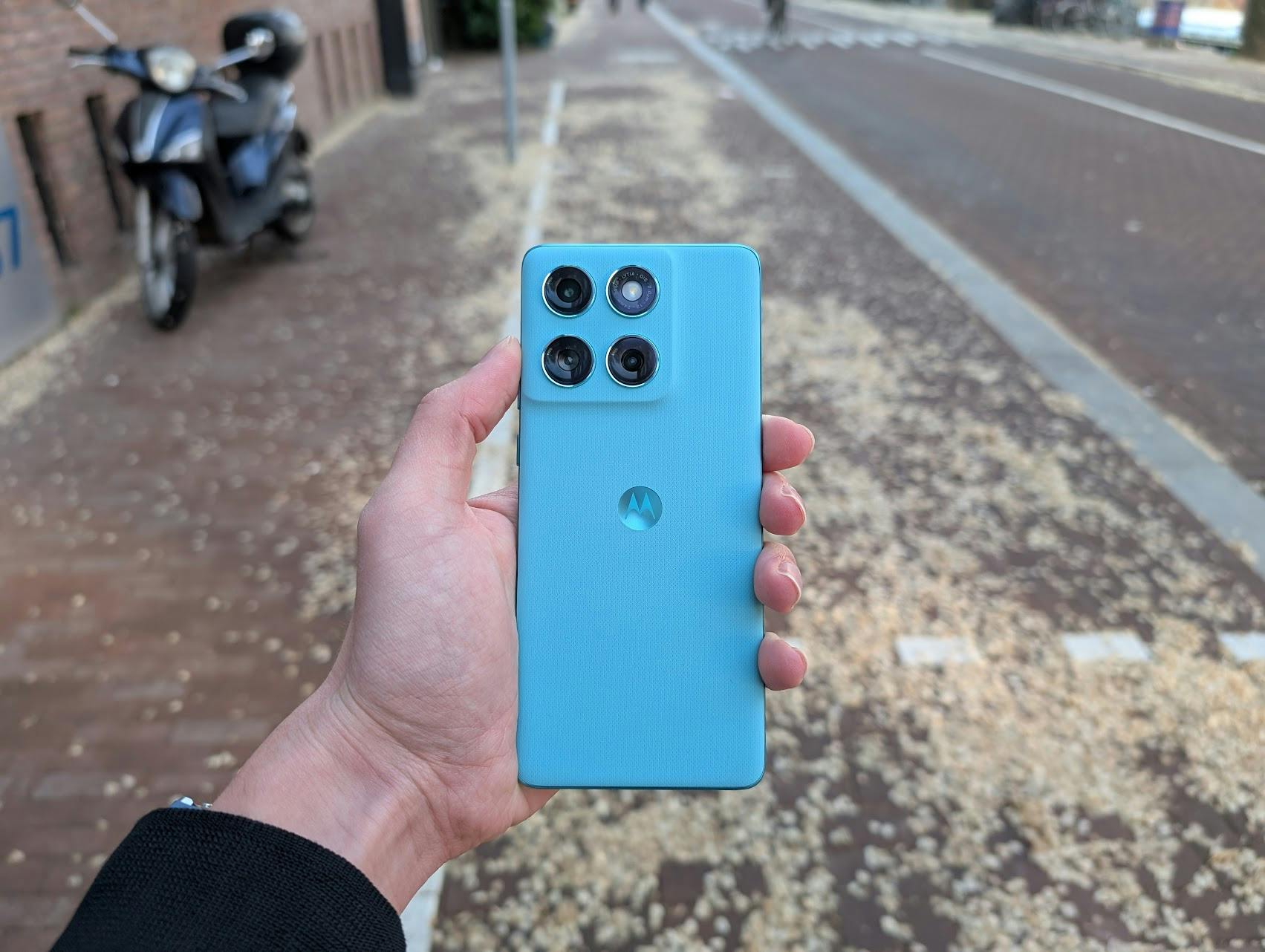 De camera's van de smartphone zijn wat verwarrend. Achterop lijken drie cameralenzen te zitten, aangevuld met een flitser. Er zijn echter maar twee camera's: een hoofdcamera en een groothoekcamera. De Edge 60 Fusion kan ook inzoomen, maar gebruikt daar zijn hoofdcamera voor. Hoewel de camera's prima zijn gelet op de prijs, merken we duidelijk dat duurdere smartphones betere kiekjes schieten. Een begrijpelijk compromis, en we zijn blij dat Motorola de groothoeklens voorzien heeft van een macrofunctie, om van heel dichtbij te fotograferen. Dat kunnen lang niet alle telefoons in dit prijssegment.