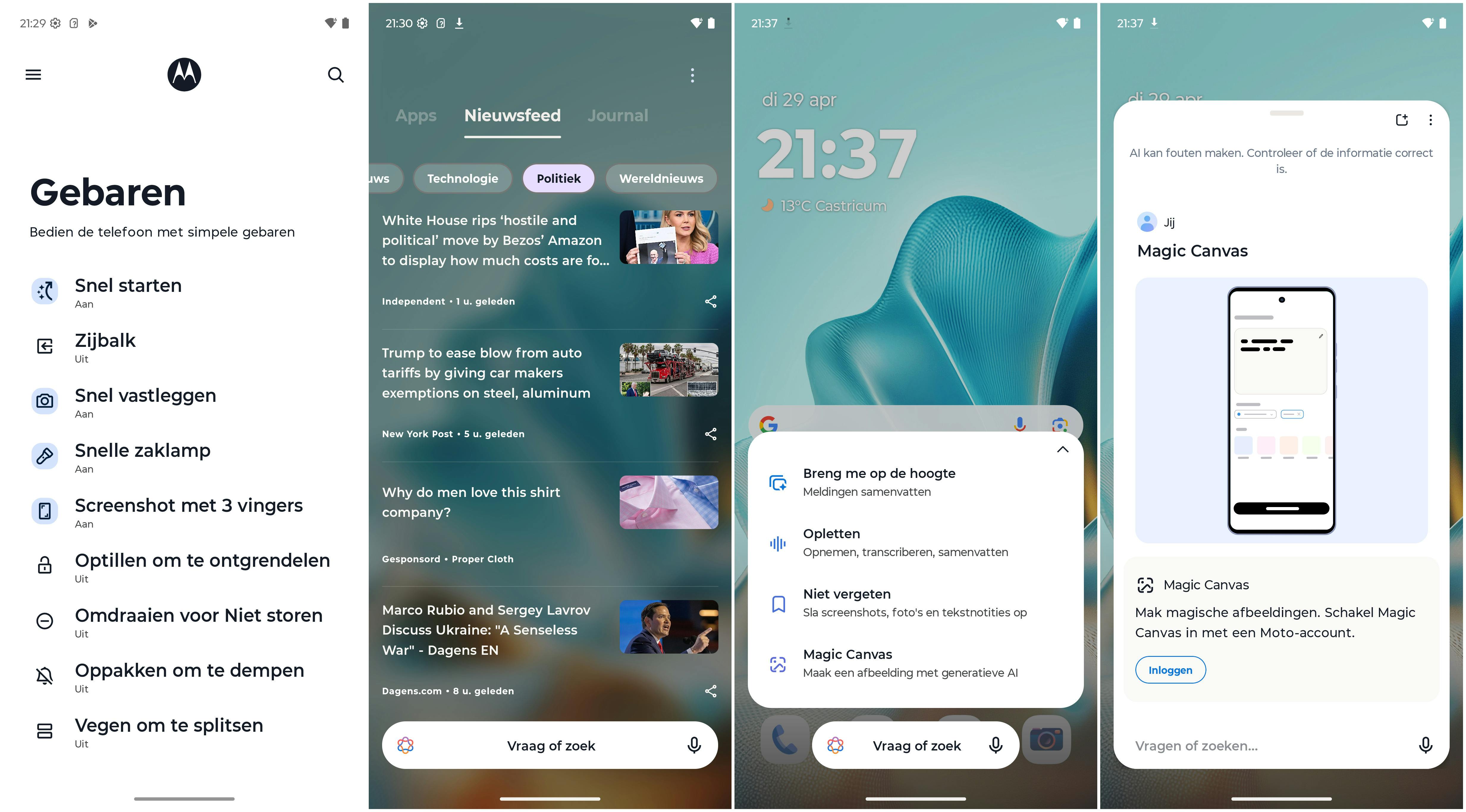 Prettig aan de Motorola Edge 60 Fusion is dat de telefoon drie Android-upgrades en zes jaar beveiligingsupdates krijgt. Je kunt het toestel dus heel lang veilig gebruiken. Motorola installeert ook heel wat AI-functies op het toestel. Sommige functies zijn nuttig, andere niet. Vertrouwd prettig blijven de gebaren om de smartphone efficiënt te bedienen. Motorola's tijdlijn met artikelen in allerlei categorieën toont ons om onduidelijke redenen alleen Engelstalige content, aangevuld met advertenties. Google's nieuwsfeed blijft dus relevanter.