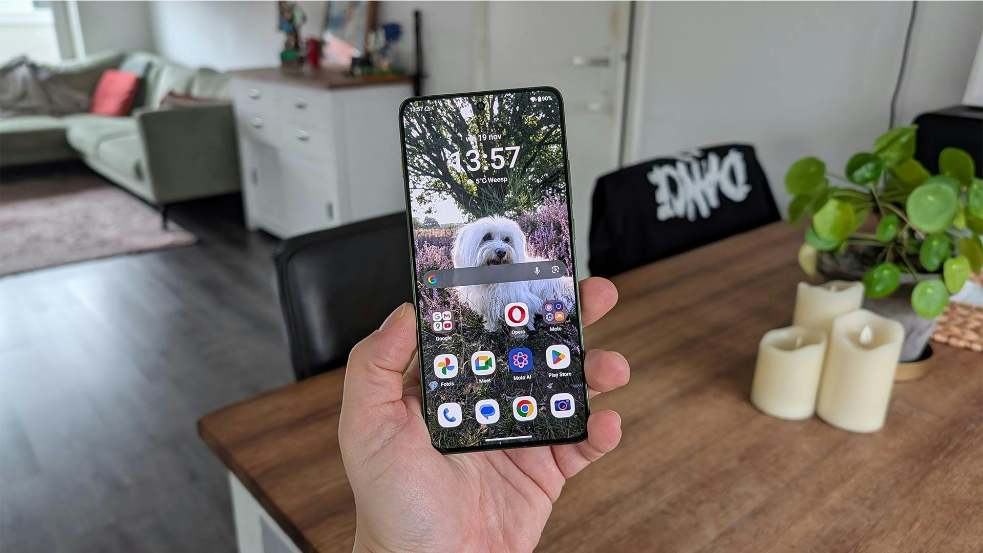 Een ander voordeel is dat de 4800mAh-batterij het opvallend lang volhoudt; zelfs bij matig tot zwaar gebruik is dat al snel een volledige dag. Daarmee overtreft hij de duurdere concurrentie van Samsung en Apple. Opladen gaat eveneens vlot, met 68 W bedraad, waardoor je binnen 50 minuten weer een volledig opgeladen batterij hebt. Ook op dit punt scoort Motorola flink wat punten.