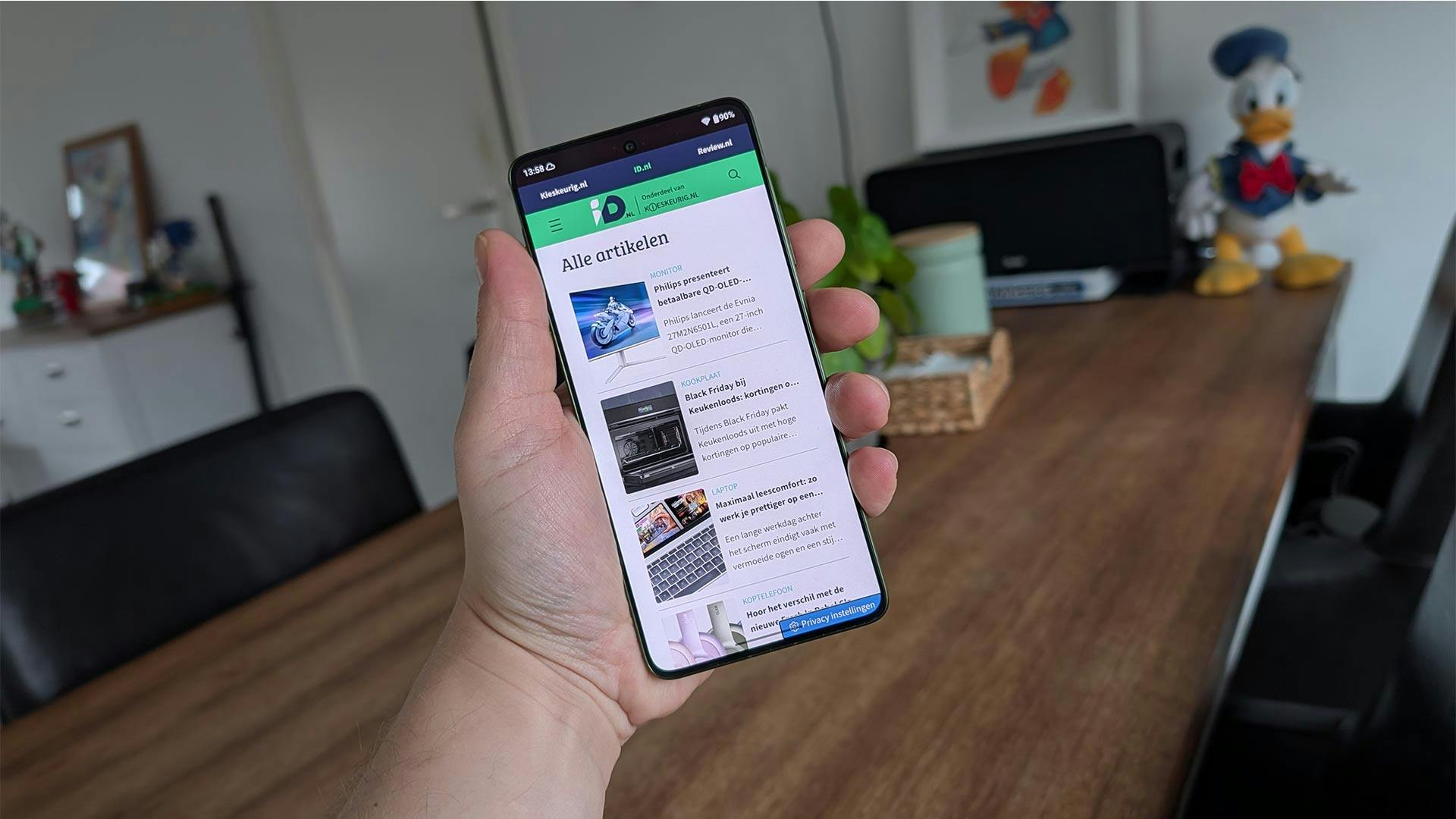 Het camerasysteem bestaat uit een 50MP-hoofdcamera met optische beeldstabilisatie, een 50MP-ultragroothoeklens en een 50MP-selfiecamera. Bij voldoende licht leveren deze camera's prettig ogende foto's met een ruim dynamisch bereik. Vooral in het donker verrast het toestel: dankzij de grote sensoren blijven beelden helder en gedetailleerd. Jammer is wel dat de software kleuren soms te nadrukkelijk verzadigt, waardoor foto's iets minder natuurlijk overkomen. Voor gebruik op sociale media zijn ze echter meer dan prima.