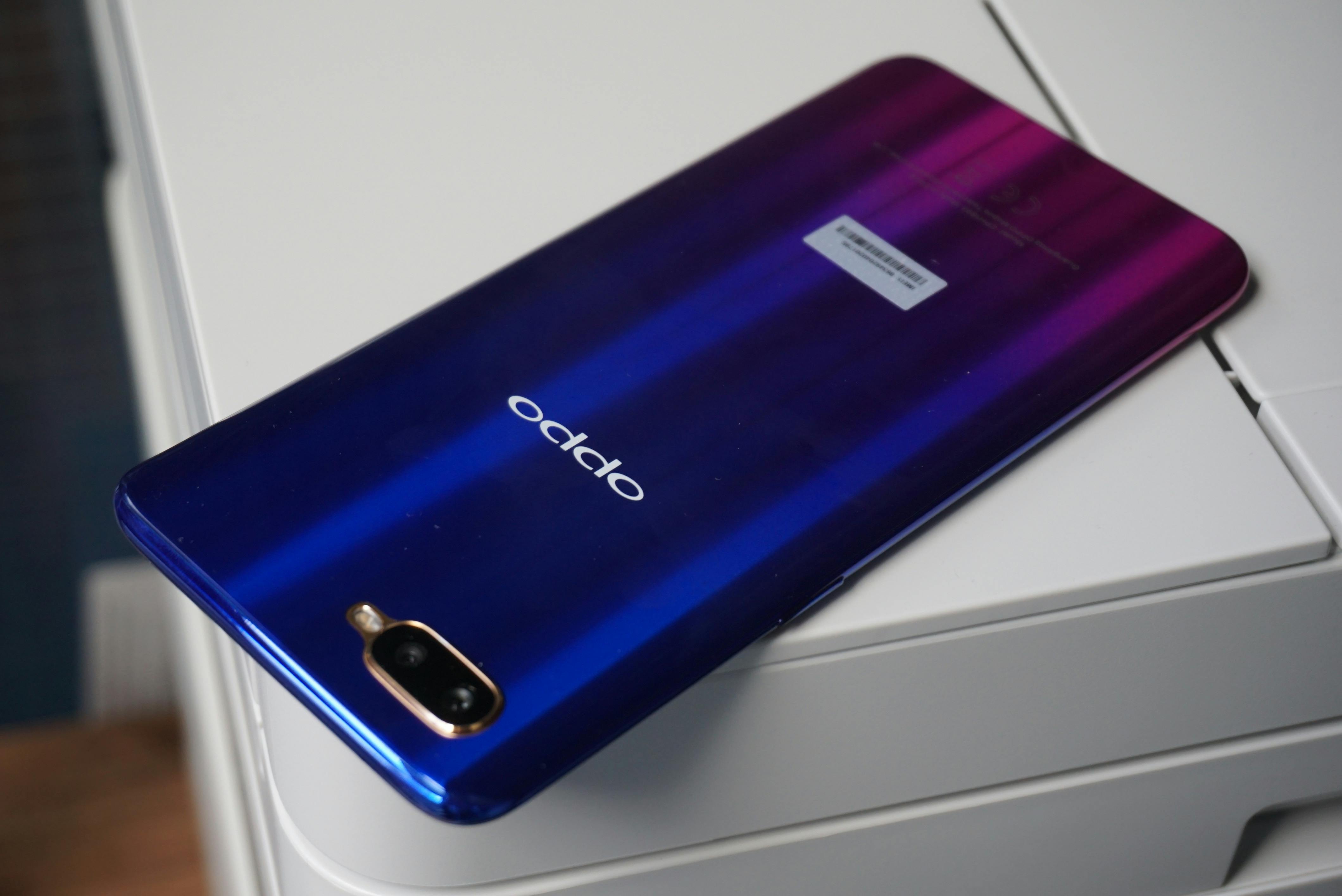 Kijk je naar de Oppo RX17 Neo, dan zou je niet verwachten dat de telefoon 349 euro kost. Het toestel oogt futuristisch en luxer dan de meeste concurrenten in zijn prijsklasse. De voorkant bestaat bijna helemaal uit scherm, met enkel bovenin een smalle inkeping (notch) waar de microfoon, lichtsensor en frontcamera achter schuilgaan. De plastic achterkant is glanzend rood of blauw met paars, waarbij de exacte kleur afhangt van hoe het licht op de behuizing valt. Dat is gaaf, al trekt het plastic wel vingerafdrukken, haren en stof aan. Het materiaal voelt ook wat goedkoop aan, al lijkt de bouwkwaliteit van de telefoon wel in orde.