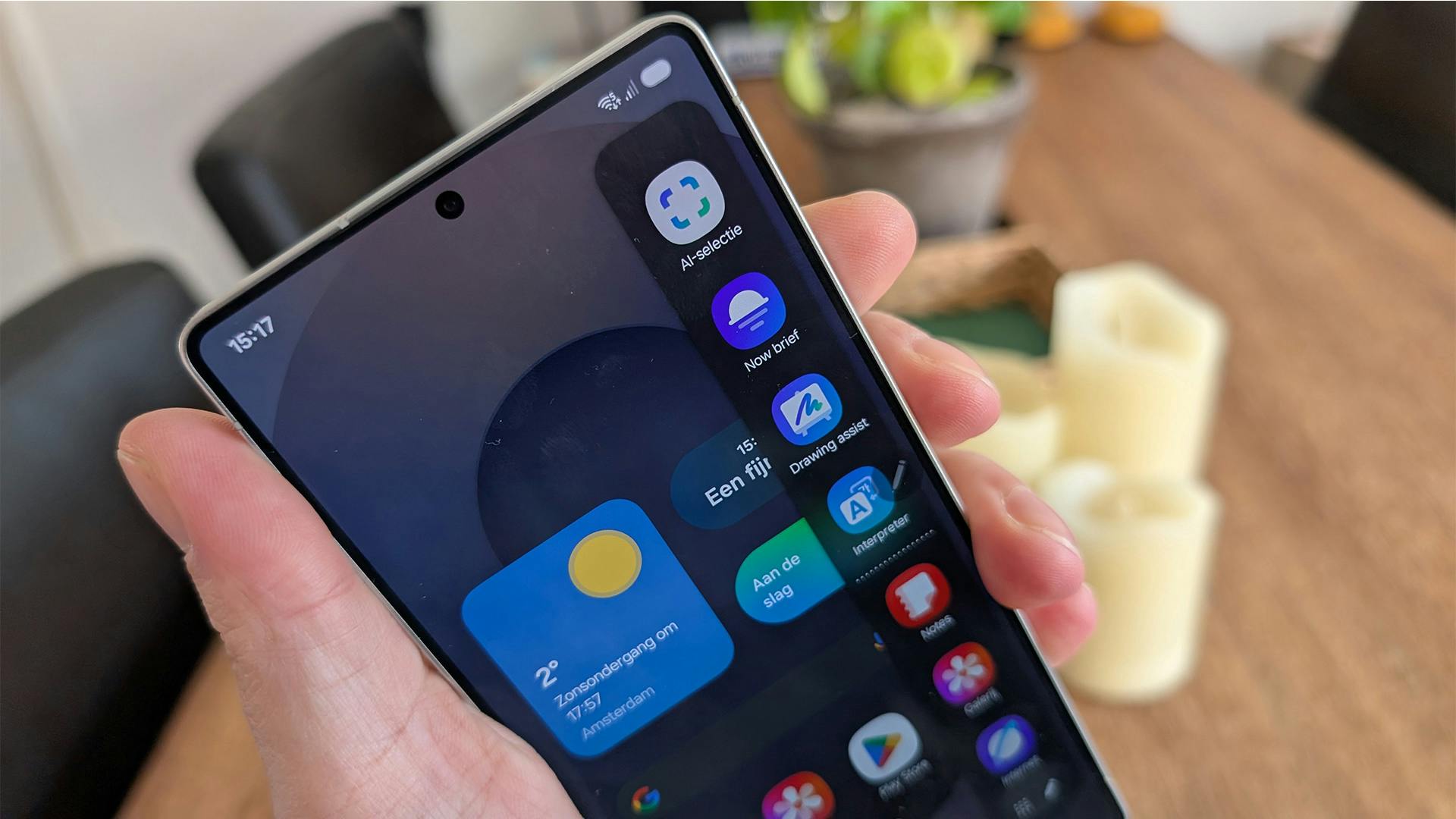 Daarnaast zijn er functies zoals Circle to Search, de Now Bar en Now Brief. Met Now Brief krijg je drie keer per dag een overzicht met relevante informatie, zoals het weer, agenda-afspraken en bijvoorbeeld suggesties voor Spotify-afspeellijsten. Hoe langer je het toestel gebruikt, hoe uitgebreider deze updates worden. Now Bar daarentegen toont alleen informatie van apps die je op dat moment gebruikt, maar dan direct op het vergrendelscherm.