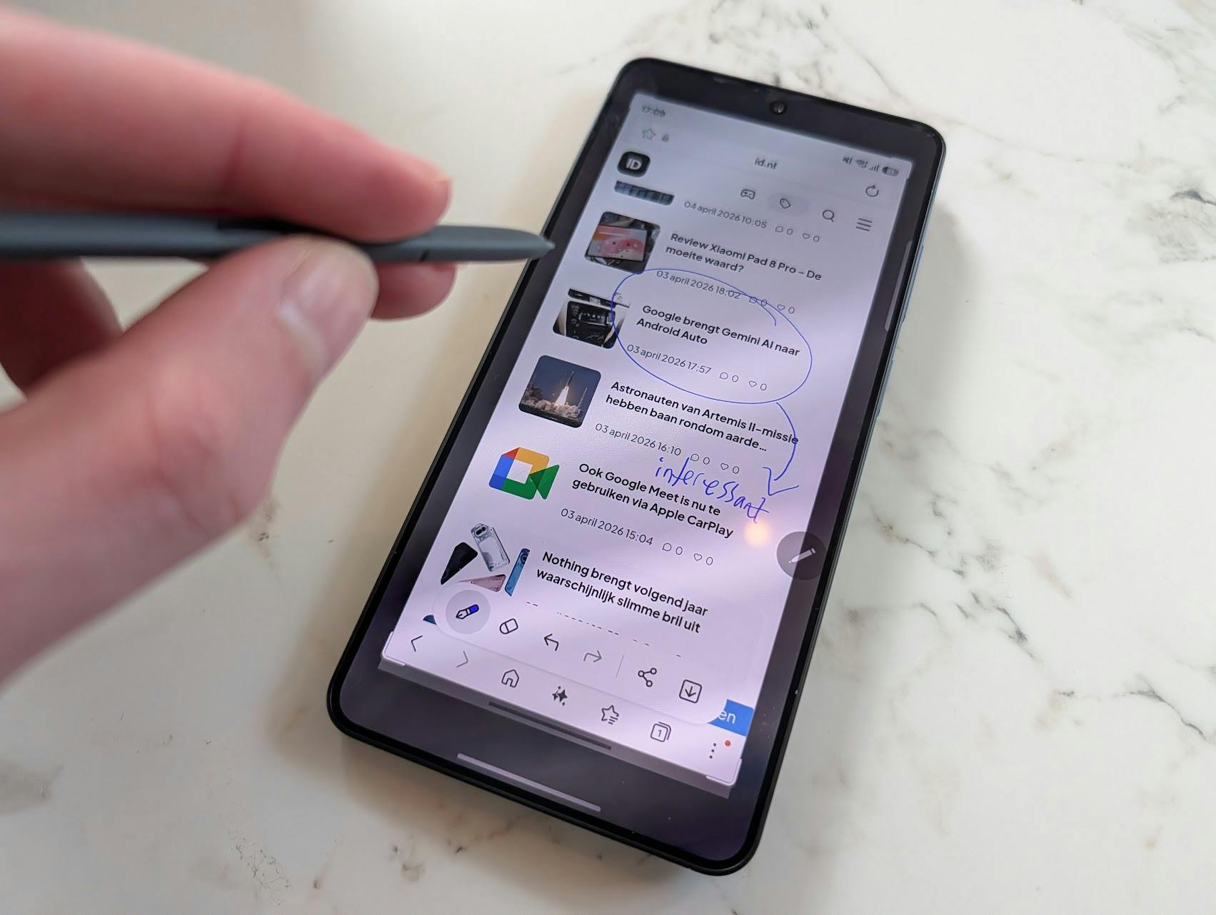 Uniek aan de Galaxy S Ultra-serie is het ingebouwde styluspennetje in de behuizing. Een druk op het knopje tovert het pennetje los, waarna je kunt tekenen, schrijven en klikken. Het concept werkt nog steeds goed, maar weet ons niet meer te verrassen zoals bij voorgaande S Ultra-telefoons wel het geval was. Voor sommige mensen blijft het pennetje een reden om deze Samsung-smartphone te kopen in plaats van een andere dure telefoon.