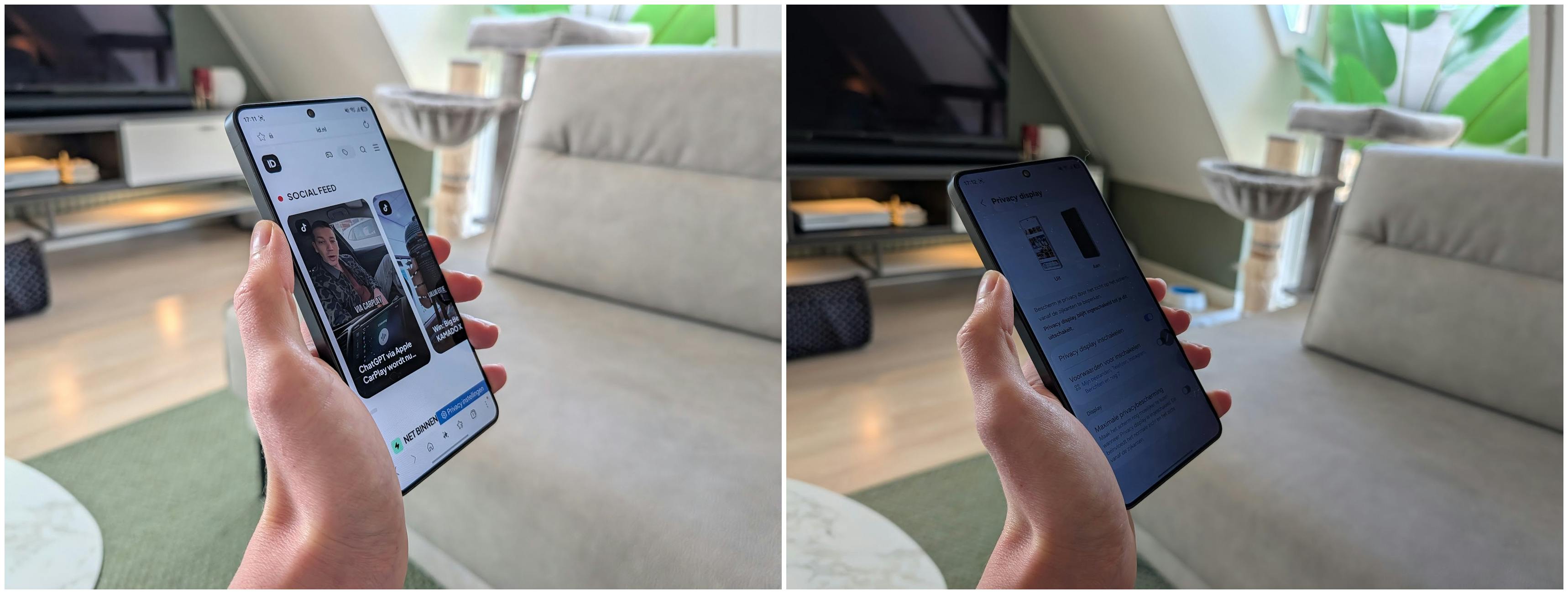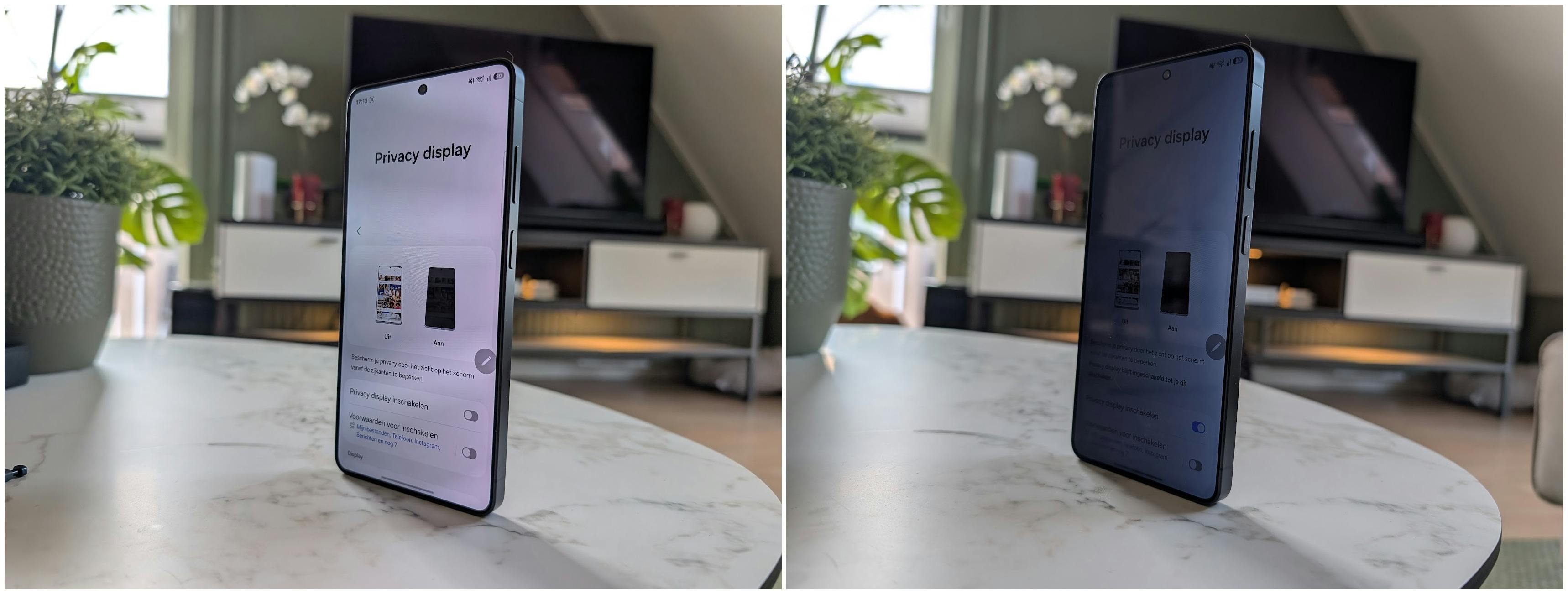 Het 6,9inch-oledscherm is van goede kwaliteit, al mag dat geen nieuws zijn voor een dure telefoon. Wat wél nieuw is, is het privacyscherm. De S26 Ultra kan met een druk op de knop een deel van zijn pixels in het scherm uitzetten, waardoor het scherm plots slecht afleesbaar is voor mensen die naast je zitten. Kijk je recht naar het scherm, dan is het display nog steeds goed afleesbaar. Deze functie maakt gluren in het openbaar vervoer een stuk lastiger en mag wat ons betreft naar elke smartphone komen! Je kunt het privacyscherm continu gebruiken of alleen laten activeren als je bepaalde meldingen krijgt en/of apps opent. Slim.