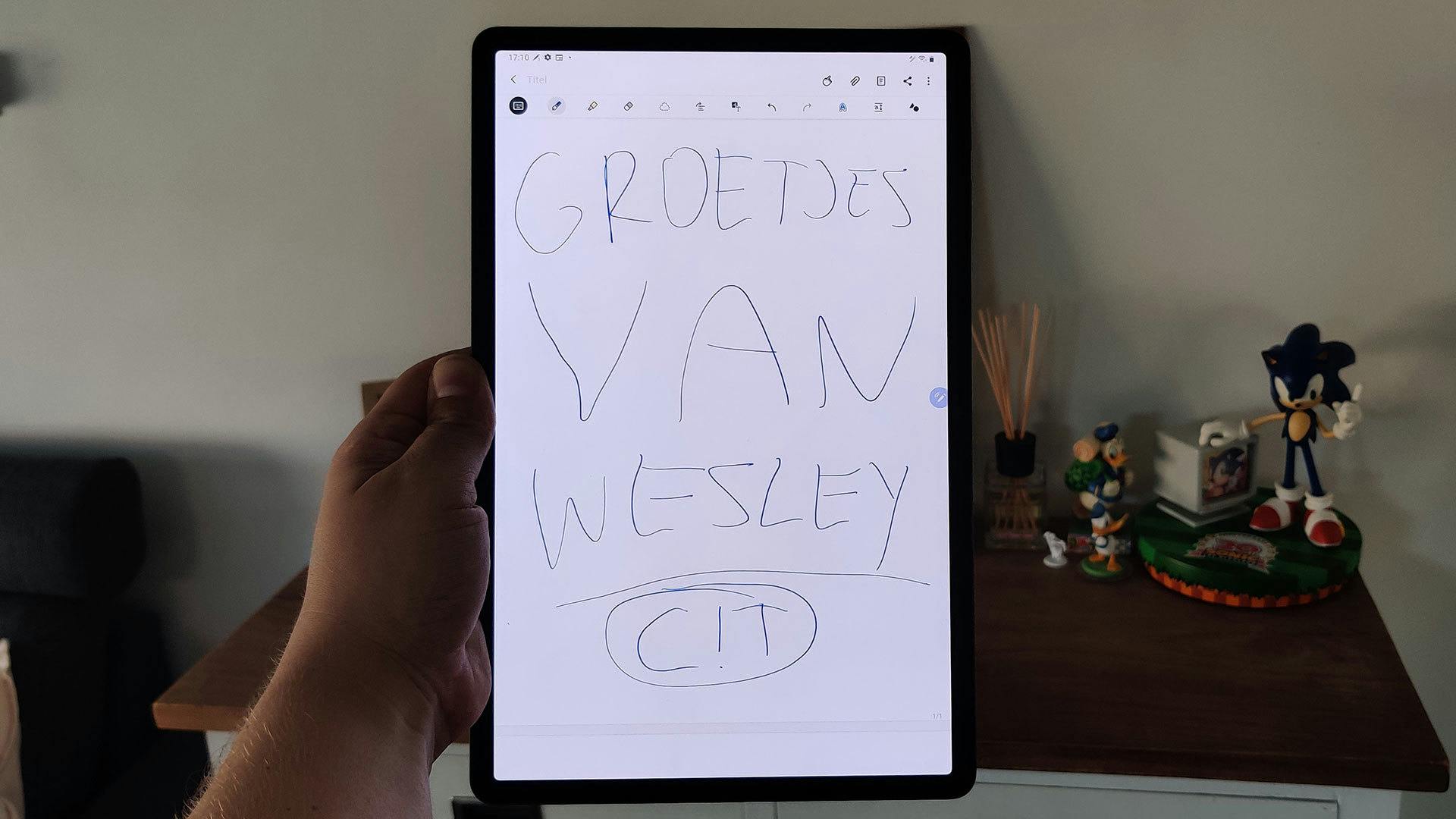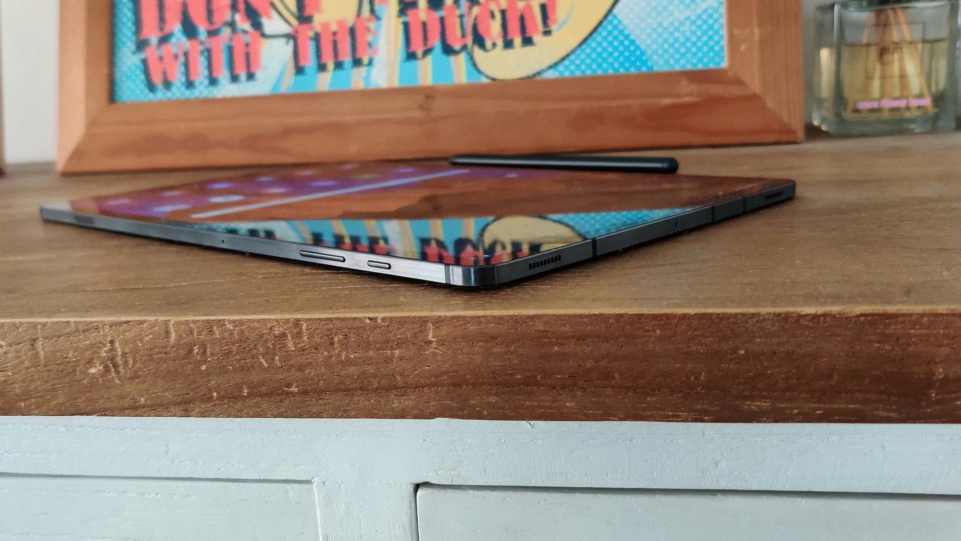 Je kunt de tablet niet draadloos opladen. Wel kun je een ontzettend snelle 45W-oplader gebruiken, die werkt met de usb-c-poort op de tablet. Aangezien je minimaal 899 euro voor dit ding betaalt, is het toch jammer om te zien dat er geen draadloos laden is. We begrijpen het ergens ook wel, aangezien opladen via de kabel een stuk sneller gaat en het anders lang duurt voordat die grote accu helemaal vol is. Maar toch: de optie hebben heeft meerwaarde.