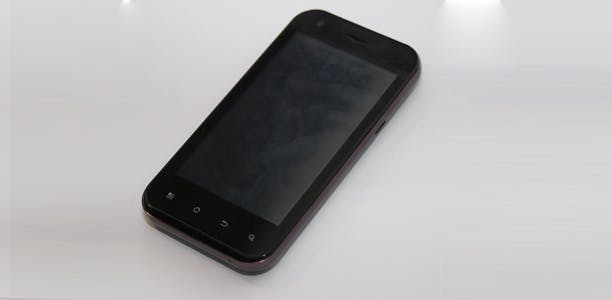 Zodra je de doos openmaakt, zie je een smartphone met een 4 inch-scherm en de bekende Android touch-toetsen liggen. Het toestel is eenvoudig zwart, maar de zijkant heeft een bronsachtige kleur. Dit zorgt ervoor dat hij er toch net wat beter uitziet, het doorbreekt het standaard uiterlijk van het toestel.