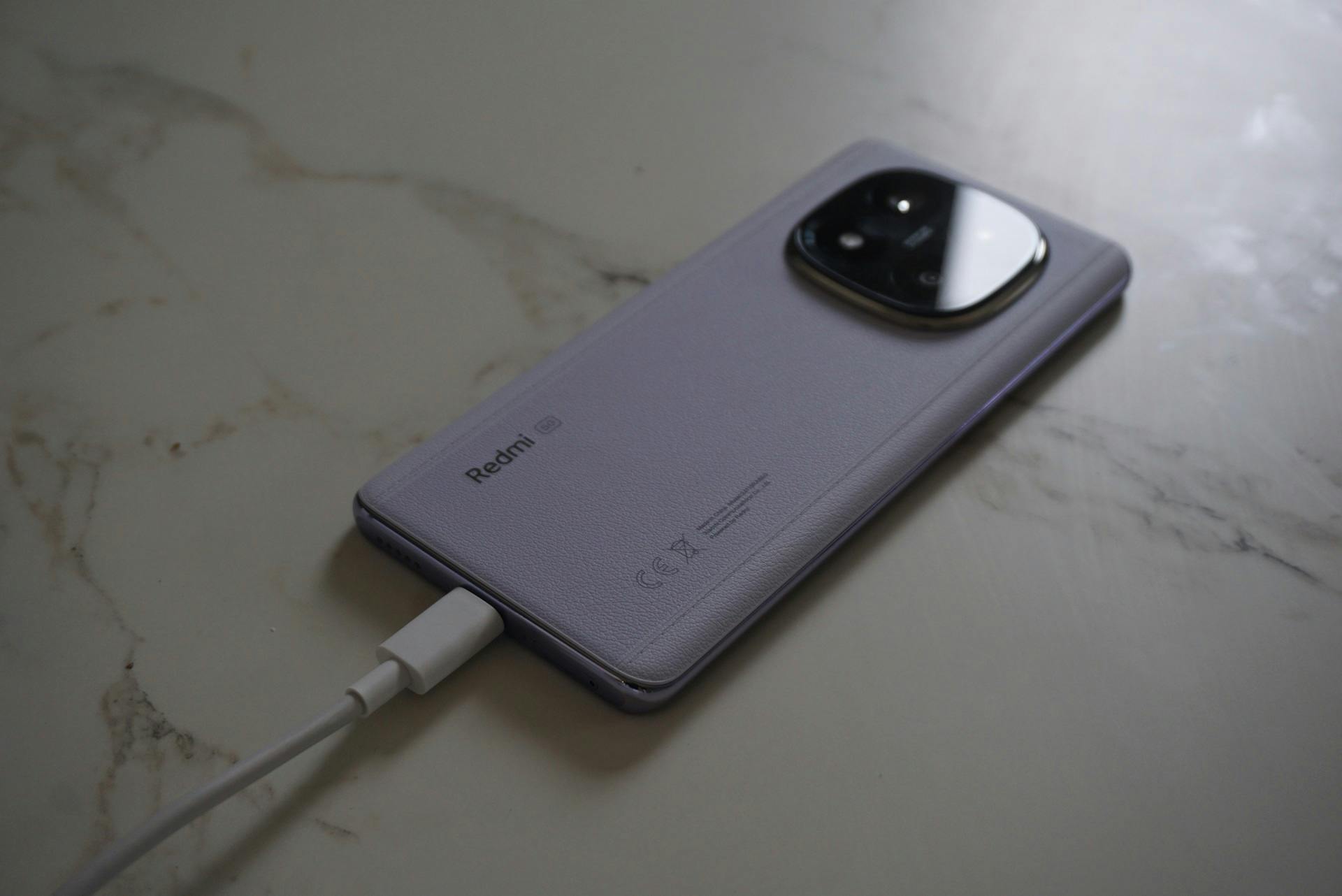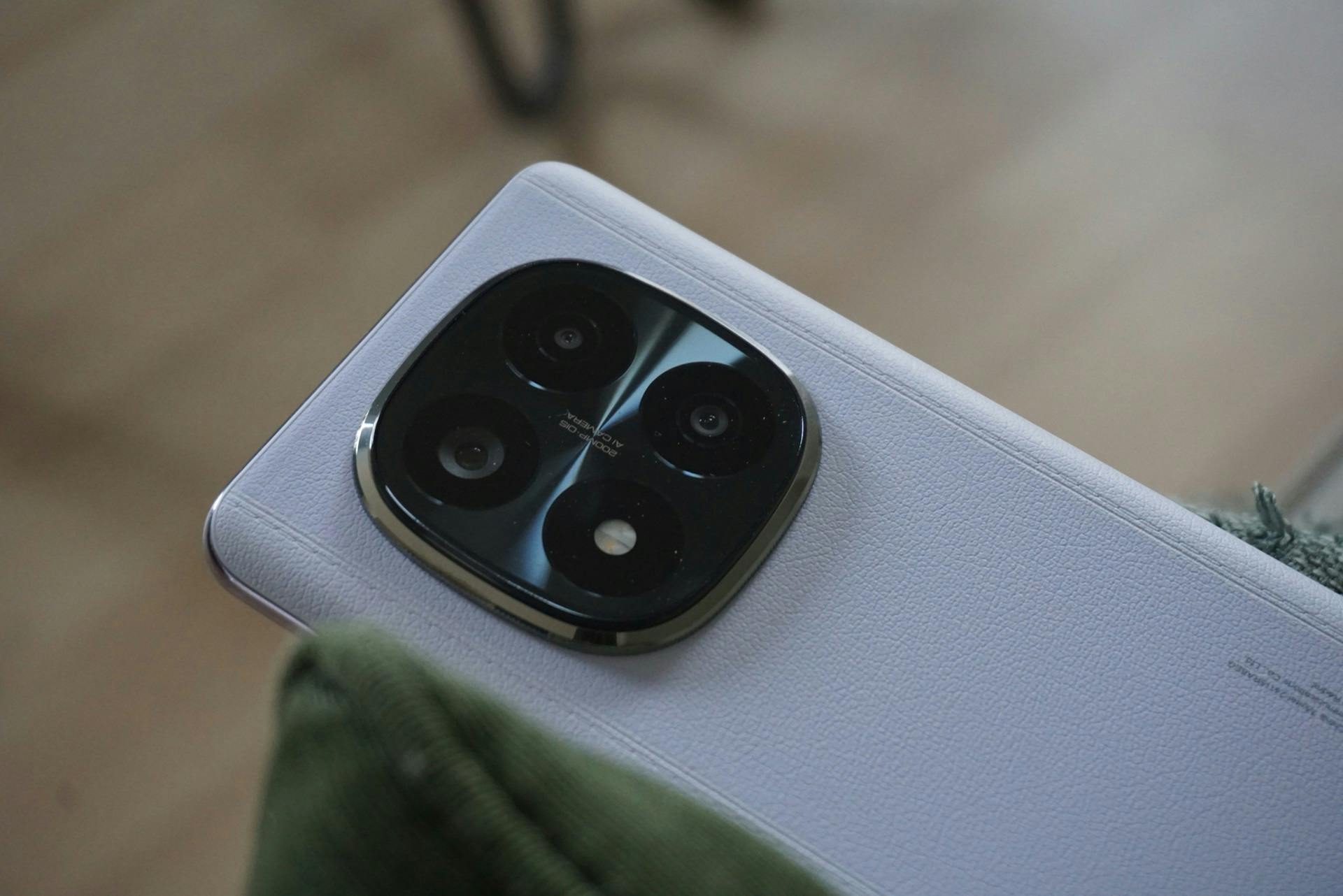 Interessant: de zwarte en blauwe versies van de telefoon hebben een glazen achterkant, terwijl de door ons geteste paarse variant een achterkant van kunstleer heeft. Dat materiaal biedt meer grip en laat geen vingerafdrukken zien. Volgens Xiaomi is de Redmi Note 14 Pro Plus van binnen ook zo ontworpen dat hij minder schade moet oplopen als je hem laat vallen.