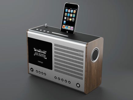 De verbinding met uw netwerk wordt gemaakt via ethernet of de ingebouwde draadloze aansluiting. Bij de eerste start wordt u door alle instellingen heen geloodst dankzij de set-up-wizard. De ingebouwde mono-speaker geeft een heel aardig geluid. Doorlussen naar een versterker is mogelijk dankzij de digitale optische uitgang of de twee analoge tulpstekkers. Of dat een fraai gezicht is, mag u zelf bepalen, maar boven op de Heritage kunt u desgewenst een iPod plaatsen. Verloopstukjes worden meegeleverd. Maakt u hier geen gebruik van, dan kunt u het afdekplaatje laten zitten. De Revo is ook te gebruiken als wekkerradio op uw nachtkastje – in het midden bevindt zich een grote snooze-knop, met daarnaast de bedieningsknoppen voor de (optionele) iPod.