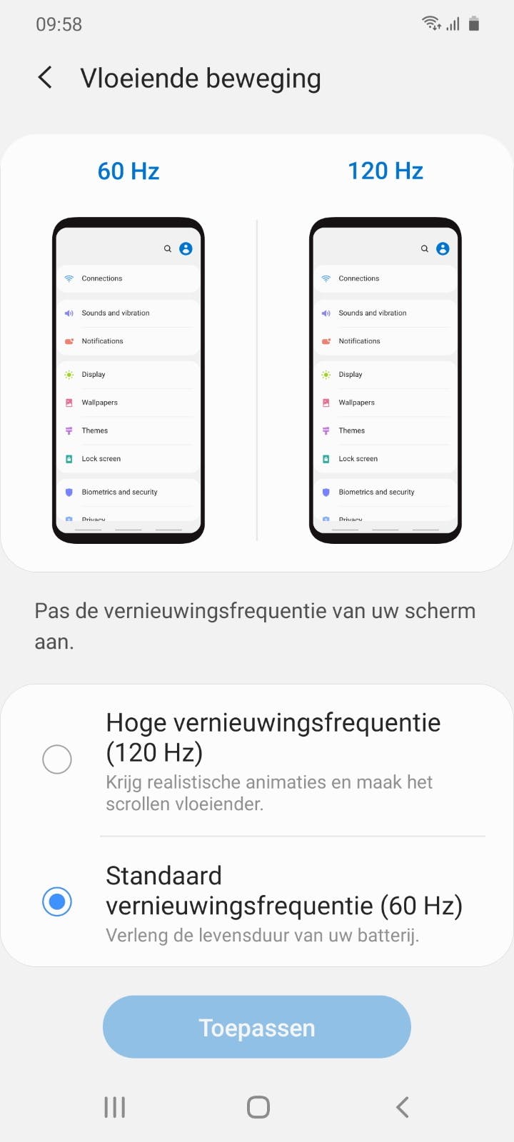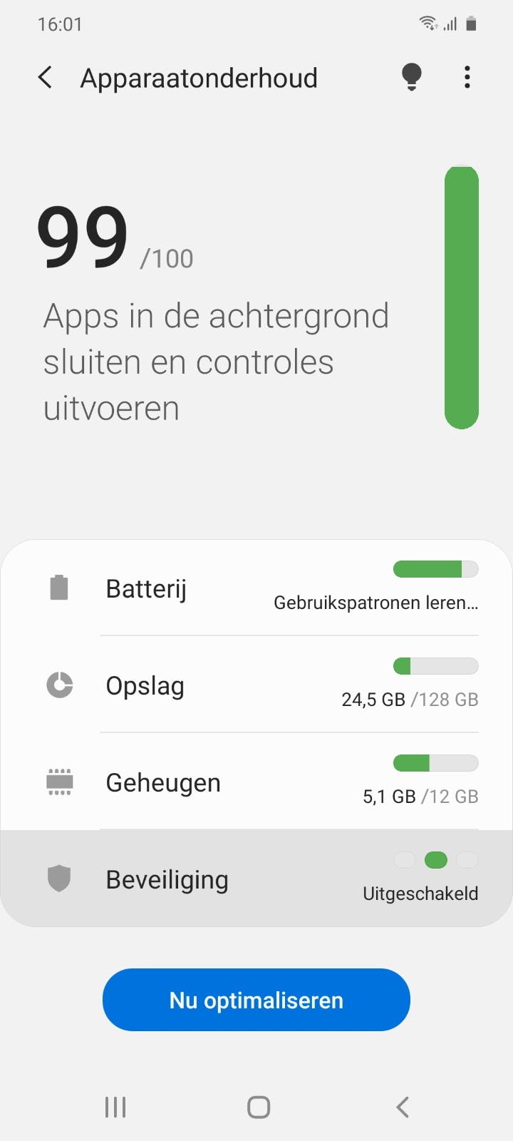 Dat betekent dus dat de Galaxy S20 ook is uitgerust met een fenomenaal mooi beeldscherm, dat qua kleurweergave, helderheid en scherpte voorop loopt. Het beeldscherm heeft een maximale verversingssnelheid van 120 hertz, waarmee beeld een stuk soepeler loopt en een 1440p-resolutie. Het draagt bij aan een nog indrukwekkendere ervaring, maar in praktijk schroefde ik zowel de resolutie als de verversingssnelheid liever omlaag om zo de accu een beetje te ontzien. Want die accu, die heeft met zijn 4.000 mAh wel een degelijke capaciteit. Het scherm en de chipset kunnen deze accu toch behoorlijk belasten. Met iets subtielere beeldscherminstellingen haal je al snel een paar uur extra uit je accu en red je het tot zo’n anderhalve dag in plaats van ruim een dag. Hoewel dit natuurlijk afhankelijk is van je gebruik.