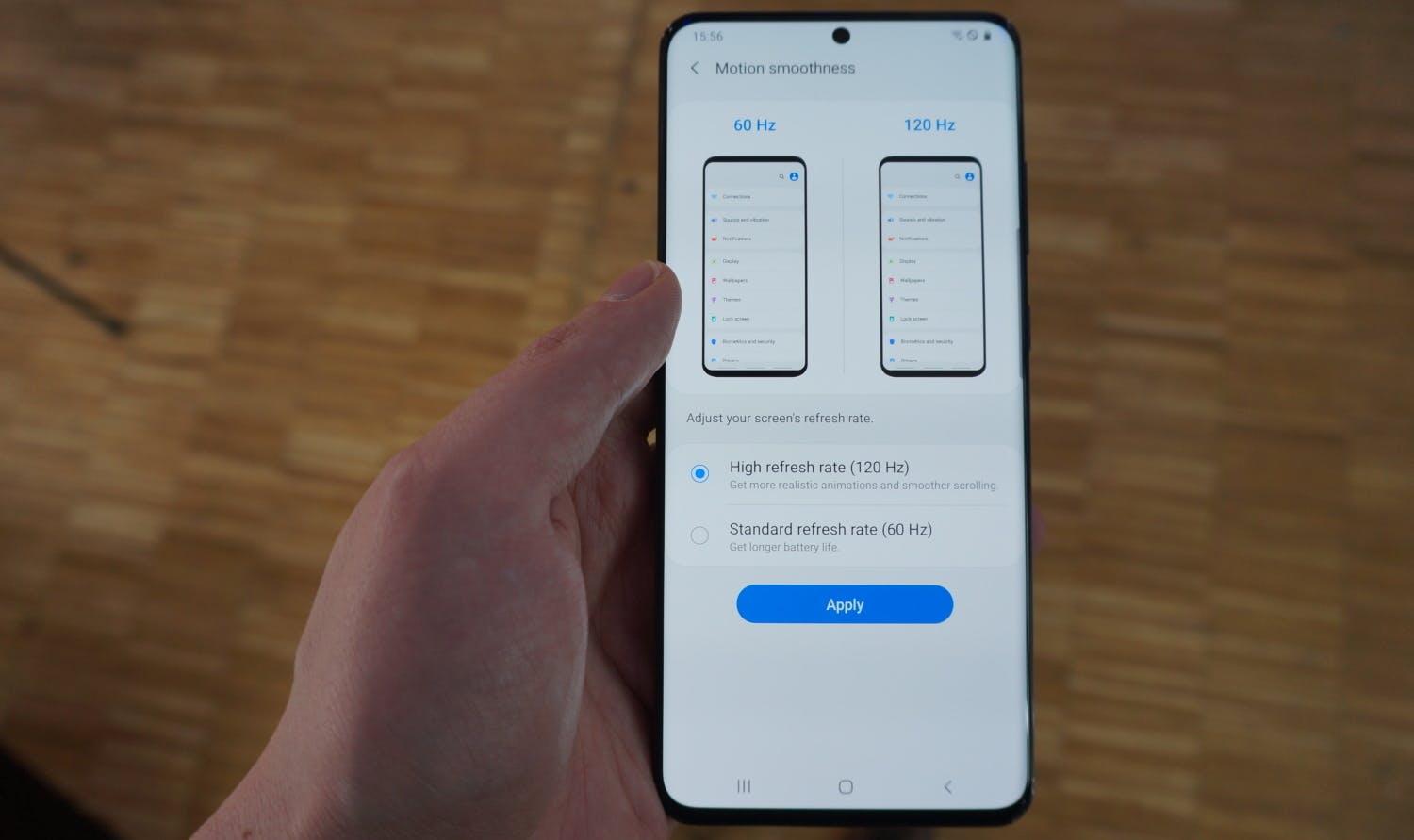 De S20, S20+ en S20 Ultra hebben met 6,2, 6,7 en 6,9 inch verschillende schermgroottes. De rest van de specificaties komen wel overeen. Uiteraard gebruikt Samsung amoled-schermen met een indrukwekkende kleurweergave. Opvallender is dat alle drie de toestellen voorzien zijn van een Quad HD+-scherm met een resolutie van 3040 x 1440 pixels. Daarnaast heeft Samsung voor alle varianten gekozen voor een 120Hz-scherm. Een dergelijk snel scherm zou zomaar eens de trend van 2020 kunnen worden. OnePlus heeft al laten zien dat een extra vlot scherm zeker meerwaarde biedt en Samsung gaat ruimschoots over de 90 Hz van OnePlus heen. De digitizer werkt zelfs op 240 Hz, zodat bewegingen van je vinger zonder vertraging door het scherm worden overgenomen. De toestellen voelen inderdaad merkbaar soepeler toen ik de schermen op 120 Hz zette en je hebt er in vrijwel alle apps profijt van.