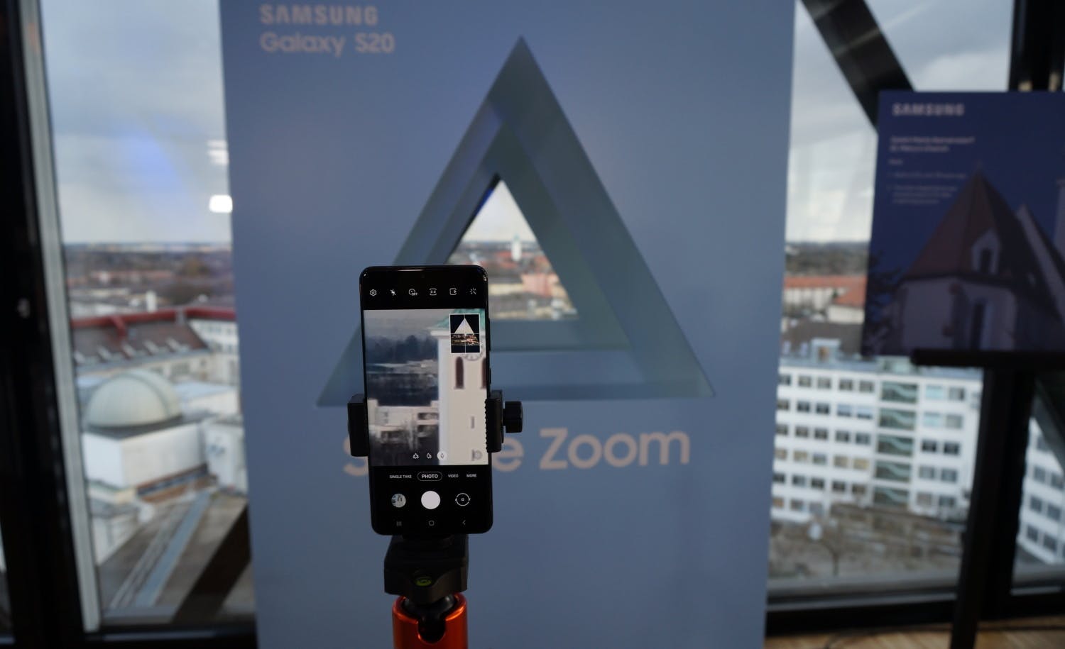 Op de cameramodule van de Galaxy S20 Ultra staat Space Zoom 100X en in de camerapp kun je daadwerkelijk 100 keer inzoomen. Uiteraard gaat het niet om een 100x optische zoom, maar wordt er een combinatie van optisch en digitaal zoomen gebruikt voor de maximale vergrotingsfactor. Samsung maakt voor de optische zoom gebruik van een prisma zodat de cameramodule achterop niet te ver hoeft uit te steken. De cameramodule die gebruikt wordt voor het zoomen is een 48megapixel-exemplaar.