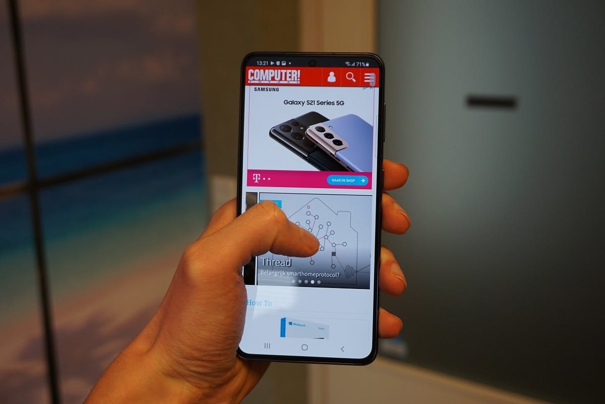 Net als de S20 heeft de S21 een oled-scherm van 6,2 inch met een hoge verversingssnelheid van 120 Hz. Maar wie denkt dat er niets veranderd is, komt bedrogen uit. Het scherm is op meerdere punten aangepast. Zo heeft de S21 een ‘plat’ scherm, zonder de gebogen verticale randen van de S20. Dat ziet er iets minder high-end uit, maar ik kan het display wel prettiger bedienen. De schermresolutie is daarnaast verlaagd van qhd naar full-hd. Klinkt als een achteruitgang, maar het scherpteverschil zie je niet tot nauwelijks. De keuze is daarom logisch, helemaal omdat de lagere resolutie een langere accuduur mogelijk maakt.