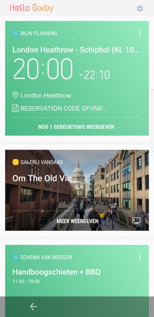 Dat is een beetje het probleem van Bixby. In praktijk merkte ik dat het voor mij persoonlijk werkelijk niks toevoegt. Het doet me erg denken aan Google Now. Probleem is echter dat Samsung het overal opdringerig in heeft verwerkt, je mag het niet weghalen. Het is overal, nog voordat het zich heeft bewezen. Op het moment van schrijven is de spraakassistent nog niet beschikbaar. Deze zal binnenkort Engelssprekend verschijnen.