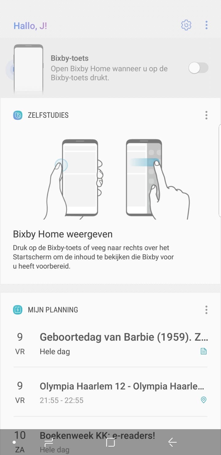 Bixby heeft een eigen overzicht, dat tevoorschijn komt wanneer je je startscherm naar rechts veegt. Je krijgt een Google Now-achtig overzichtje met weerinformatie, verkeer, agenda, nieuwskoppen en meer. Helaas weet het Google-overzicht me van betere informatie te voorzien. De spraakassistent is wel te gebruiken, mits je er Engels tegen spreekt. In luisteren en goed antwoorden heeft Bixby echter nog een lange ontwikkel-weg te gaan. Positief is wel dat de Bixbyknop aan de linkerzijde van het toestel uit te schakelen valt. Bij de S8 kon dat niet, en een druk op de knop (of het toestel nou standby stond of niet) bracht je altijd direct in het overzicht. Om dol van te worden. Ondanks dat je de knop nu uit kunt zetten, kun je er geen andere functie aan geven, zoals een sluiterknop voor de camera. Dat is wel wat flauw.