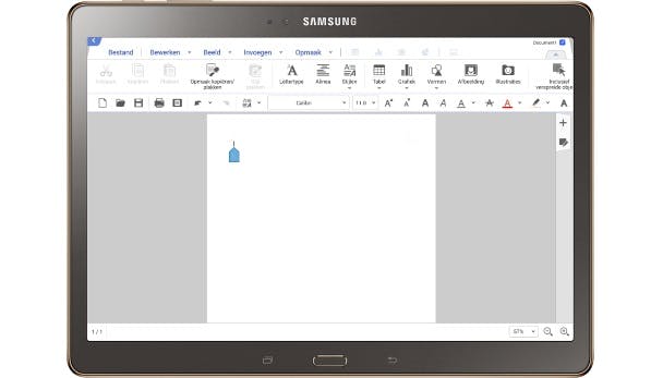Samsung levert Hancom Office 2014 mee, dat bestaat uit tekstverwerker Hword 2014, spreadsheet Hcell 2014 en presentatieprogramma Hshow 2014. Een groot voordeel van Hancom Office 2014 is dat de apps sterk lijken op wat we van Microsoft Office 2013 kennen. We zagen niet eerder een officepakket voor Android dat zo sterk lijkt op Microsoft Office en dat is een compliment. Bovendien is Hancom Office 2014 functioneel erg compleet en compatibel met Microsofts bestandsformaten. De apps bieden integratie met Dropbox, Google Drive en OneDrive.