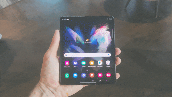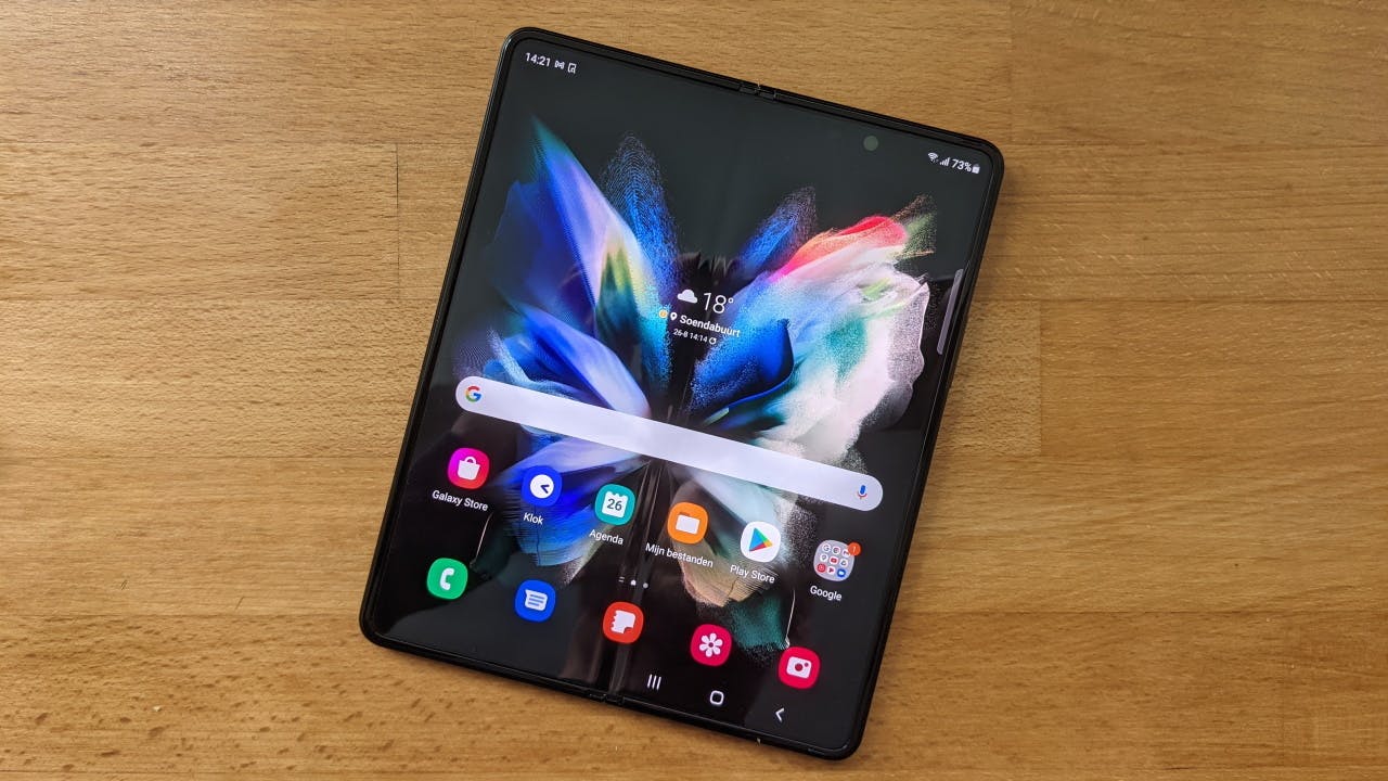 Wanneer je het toestel openklapt heb je een vierkant scherm tot je beschikking dat groot genoeg is om tabletscherm genoemd te mogen worden. Nadeel is wel dat de vouwlijn voorlopig nog een probleem is dat Samsung niet weet op te lossen. Het ziet er niet fraai uit en bovendien voel je het ook als je de Galaxy Z Fold3 bedient.