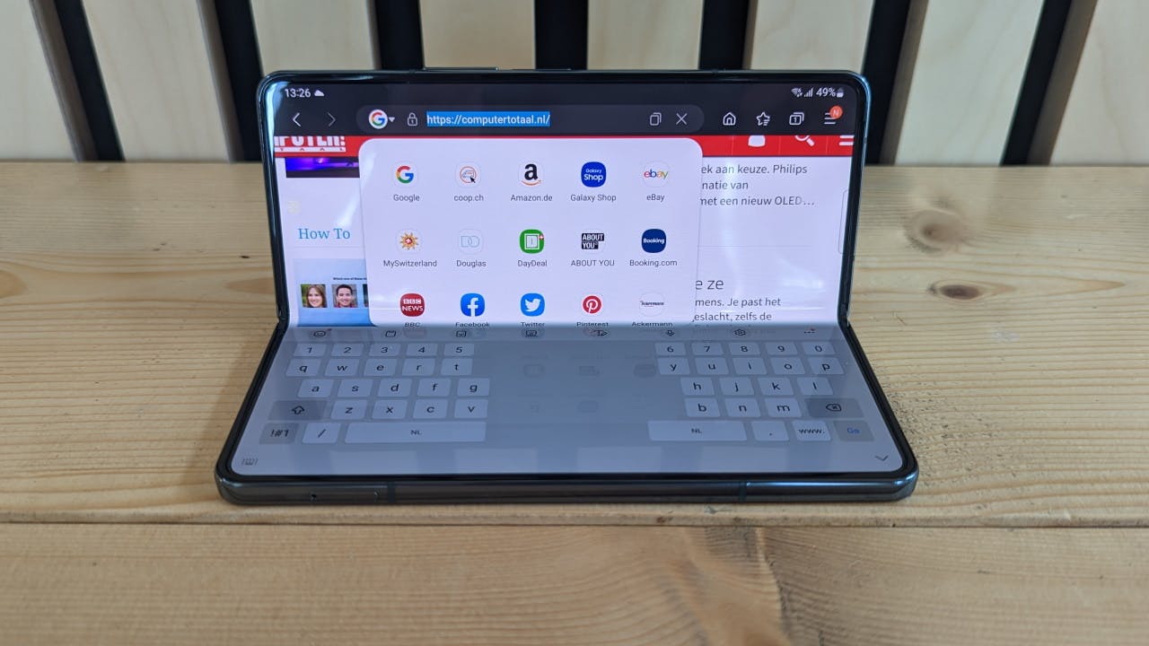 In praktijk heb je ook het beste van beide werelden in je broekzak. Hoewel het toestel ietsje dikker is dan een smartphone en dichtgeklapt wat smaller is, kun je de voorzijde gebruiken zoals je van een smartphone gewend bent. Even snel een appje beantwoorden of iets opzoeken is zo gepiept. Vervolgens vouw je het toestel zo uit om er het beste van een tablet uit te halen. Het scherm leent zich (met name door de verborgen frontcam) uitstekend voor het kijken van video’s. Ook kun je prima op het scherm werken.