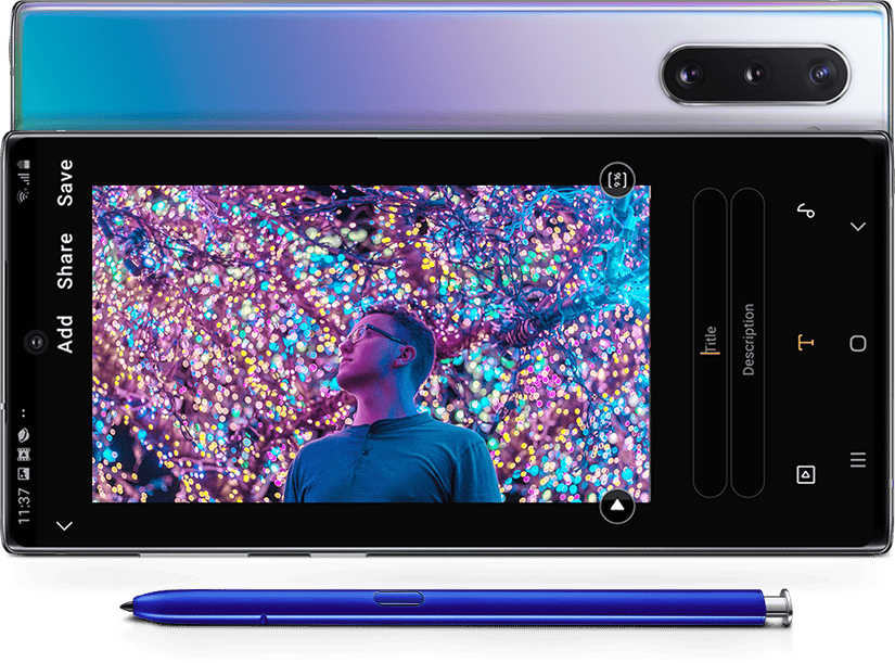 Het kenmerkende styluspennetje dat al jaren in de onderkant van een Note-telefoon zit, kan natuurlijk niet ontbreken op de Note 10 (Plus). Met een klik schuif je de pen uit de behuizing en kan je hem voor diverse doeleinden gebruiken. Tekenen, schrijven en wat knippen en plakken zijn bekende features, maar dit jaar is er meer. Vanwege de bluetooth low energy-werking doet het pennetje het ook als je hem een paar meter van de Note 10 (Plus) vandaan haalt. En omdat hij gebaren 'voelt', kan je hem onder meer gebruiken als aanwijzer voor je PowerPoint of om op afstand foto's te maken. Ook nieuw is de handschriftherkenning: schrijf je in Samsungs notitieapp dan kan je de tekst met één druk omzetten naar getypte letters in pdf- of Word-formaat.