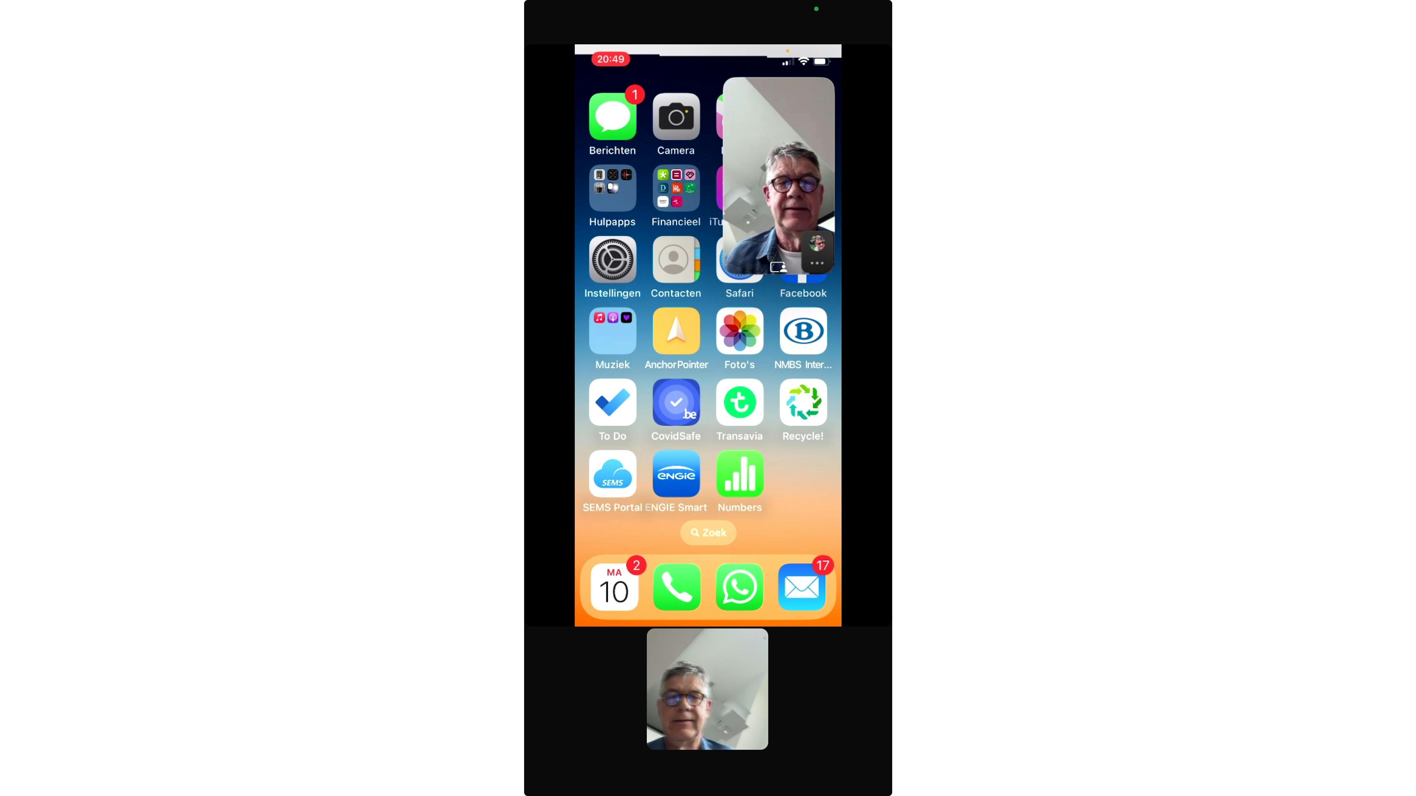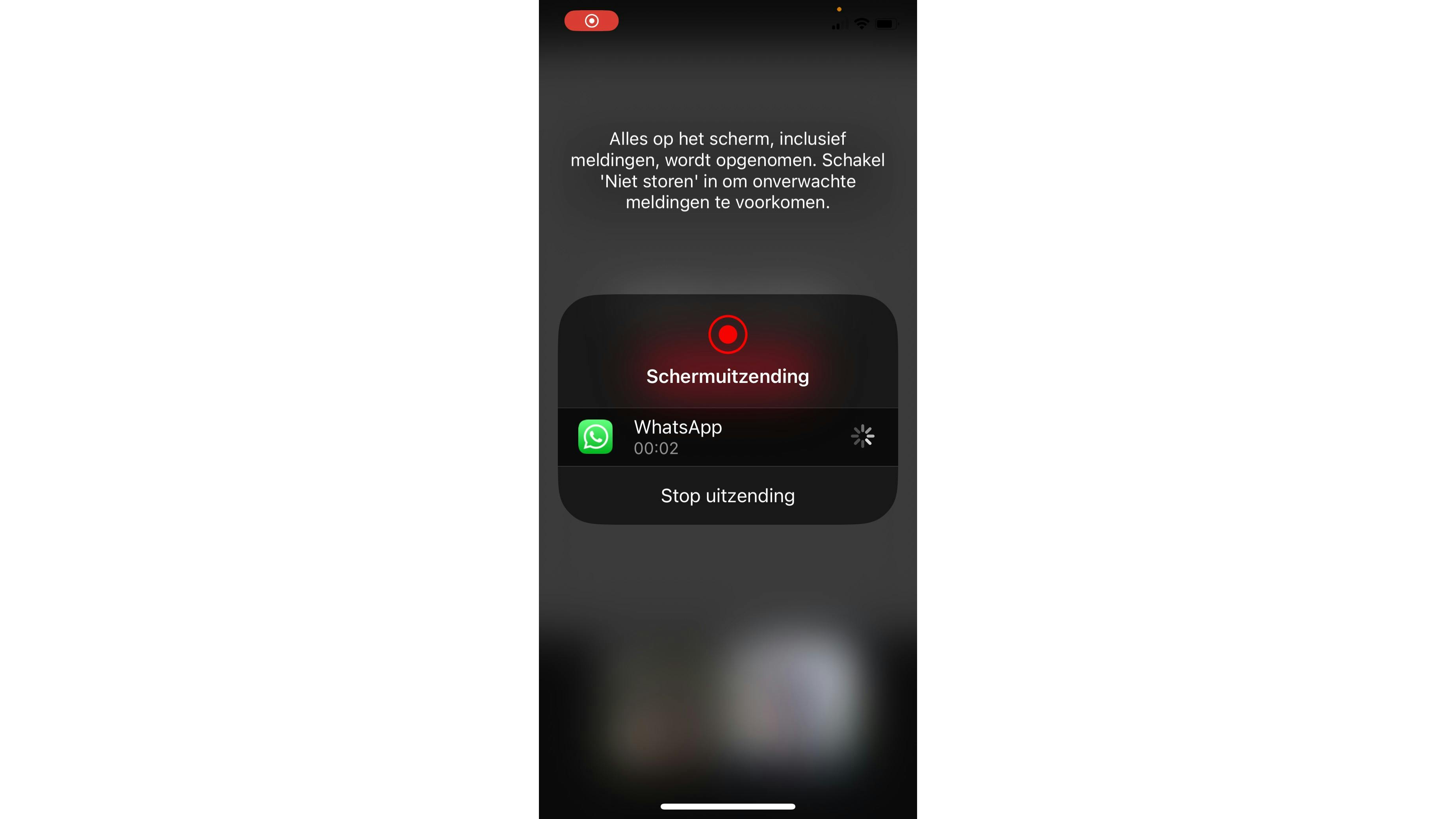 Nieuw is dat je nu ook de audio van je smartphone op die manier kunt delen. Start een videogesprek op de gebruikelijke manier en je ziet onderaan bij de bedieningsknoppen een pictogram met drie horizontale stippen: tik hierop en klik op Deel scherm (iOS) of Scherm delen (Android). Vervolgens verschijnt er een korte uitleg van deze functie. Ga door en tik op Start uitzending (iOS) of Nu starten (Android). Hierdoor wordt de schermdeling gestart; vanaf nu kan de ander alles volgen wat er bij jou op je scherm gebeurt. Zo kun je bijvoorbeeld teruggaan naar het homescreen en ook andere apps openen terwijl de ander meekijkt. Wanneer je dit scherm verlaat, keer je terug naar het videogesprek in WhatsApp.