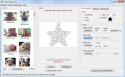 Het programma heeft een tiental standaardvormen aan boord en u kunt tekst gebruiken als blauwdruk. Wilt u liever op de creatieve toer? Gebruik dan een eigen afbeelding of – nog creatiever – teken een eigen collagevorm. Na het kiezen van de vorm, geeft u aan welke foto’s u in uw collage wilt gebruiken. Blader door uw harde schijf en klik alle afbeeldingen aan die u in de collage wilt stoppen.