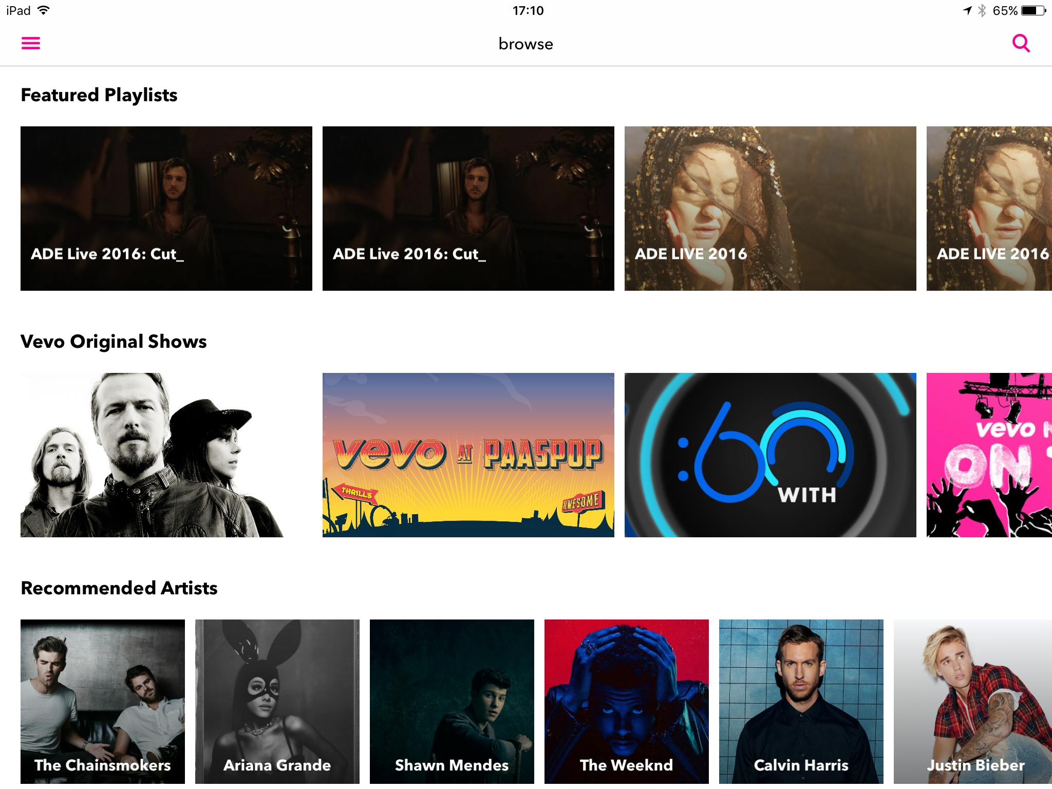 Vevo biedt in samenwerking met YouTube een enorme verzameling muziekvideo’s. Hiermee spoor je snel de officiële video’s van je favoriete artiesten op en kijk je altijd in hoge kwaliteit. Eindelijk verlost van wiebelige concertopnames met slecht geluid! Ook is er exclusieve content, zelfs specifiek voor Nederland. Zo maakte Vevo Nederland dit jaar opnames en backstage interviews op Paaspop. Met de app stream je de content gemakkelijk naar je tv via Airplay of Chromecast. Met een account kun je het aanbod personaliseren en persoonlijke afspeellijsten maken.