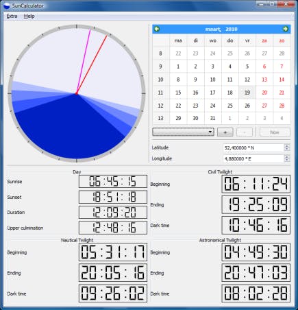 SunCalculator geeft inzicht in de tijden dat de zon opkomt of ondergaat.