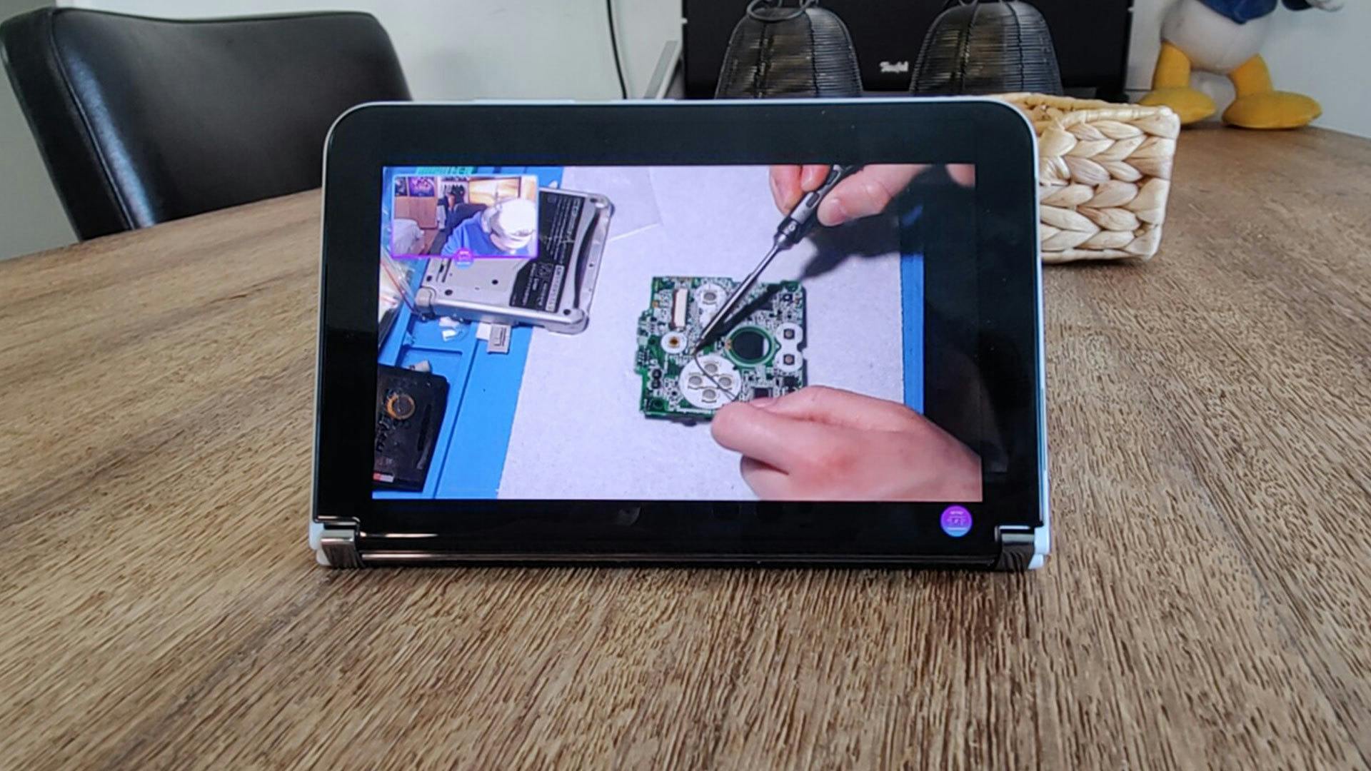 Dit betekent niet dat het systeem daardoor in zijn geheel waardeloos is. Want het design leent zich voor veel handige gebruikersmomenten. Zo kun je één scherm plat op een bureau of plank plaatsen en een ander deel rechtop (of in een bepaalde hoek) neerzetten en bijvoorbeeld deelnemen aan digitale vergaderingen. En anders kun je zodoende comfortabel video’s bekijken. Je hoeft dan ondertussen niet te rommelen met stands of accessoires.