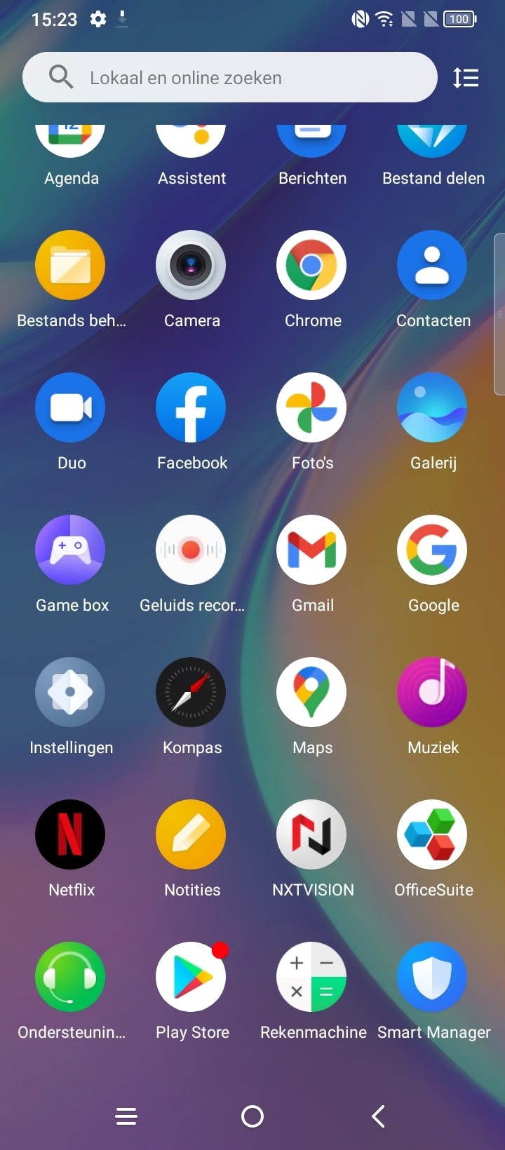 Als gezegd is het scherm van de 20 SE met 6,82 inch erg groot. Dat is een minpunt omdat je de telefoon lastig met één hand bedient en tegelijkertijd een pluspunt omdat het scherm lekker veel informatie toont. Met name handig als je een groter lettertype gebruikt.