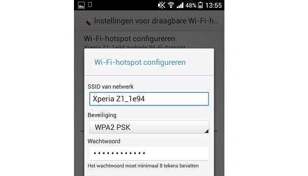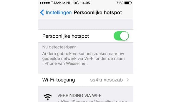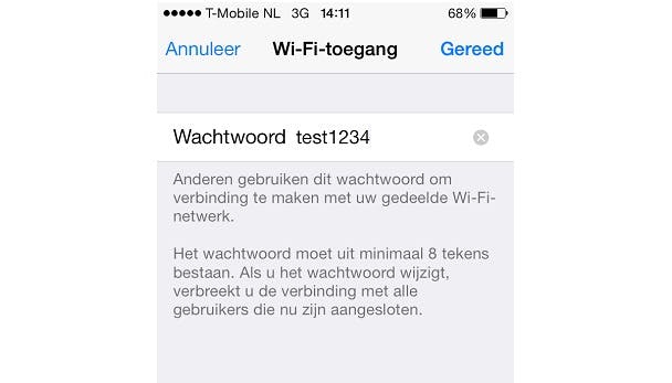 Je kunt je wifi-toegang veranderen door hierop te tikken. Deze code hebben gebruikers van je tethering-verbinding nodig om toegang te krijgen tot jouw gedeelde wifi-netwerk.